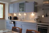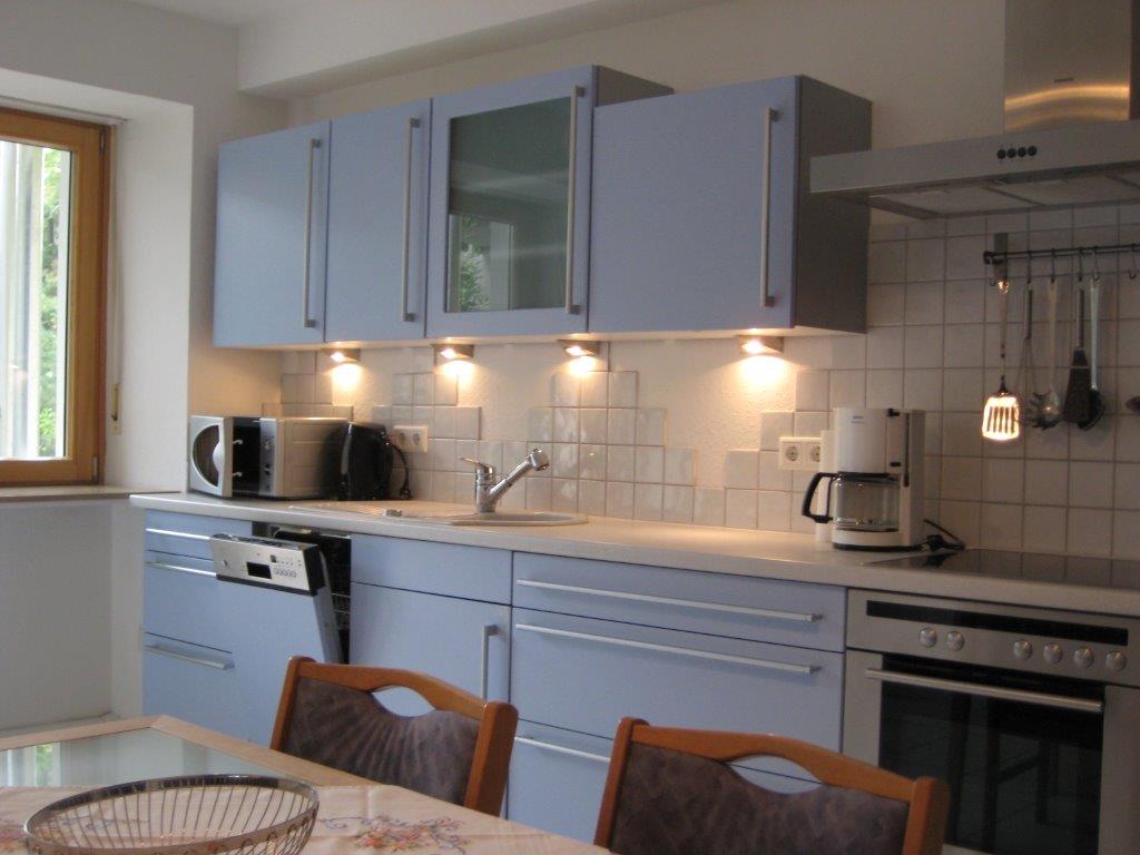 - Küche mit Essecke (ausgestattet mit E-Herd, Spülmaschine, Backofen, Kühlschrank mit Gefrierfach, Dunstabzugshaube, Mikrowelle, Kaffeemaschine, Wasserkocher, Toaster, Geschirrtücher und Spülmittel)