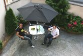 An die Wohnung grenzt gleich der gemütliche Innenhof, in dem Sie den Tag schon mit Ihrem Frühstück beginnen können. Er lädt Sie auch zum Sonnen oder Abendausklang bei einem Glas/Flasche Wein ein.