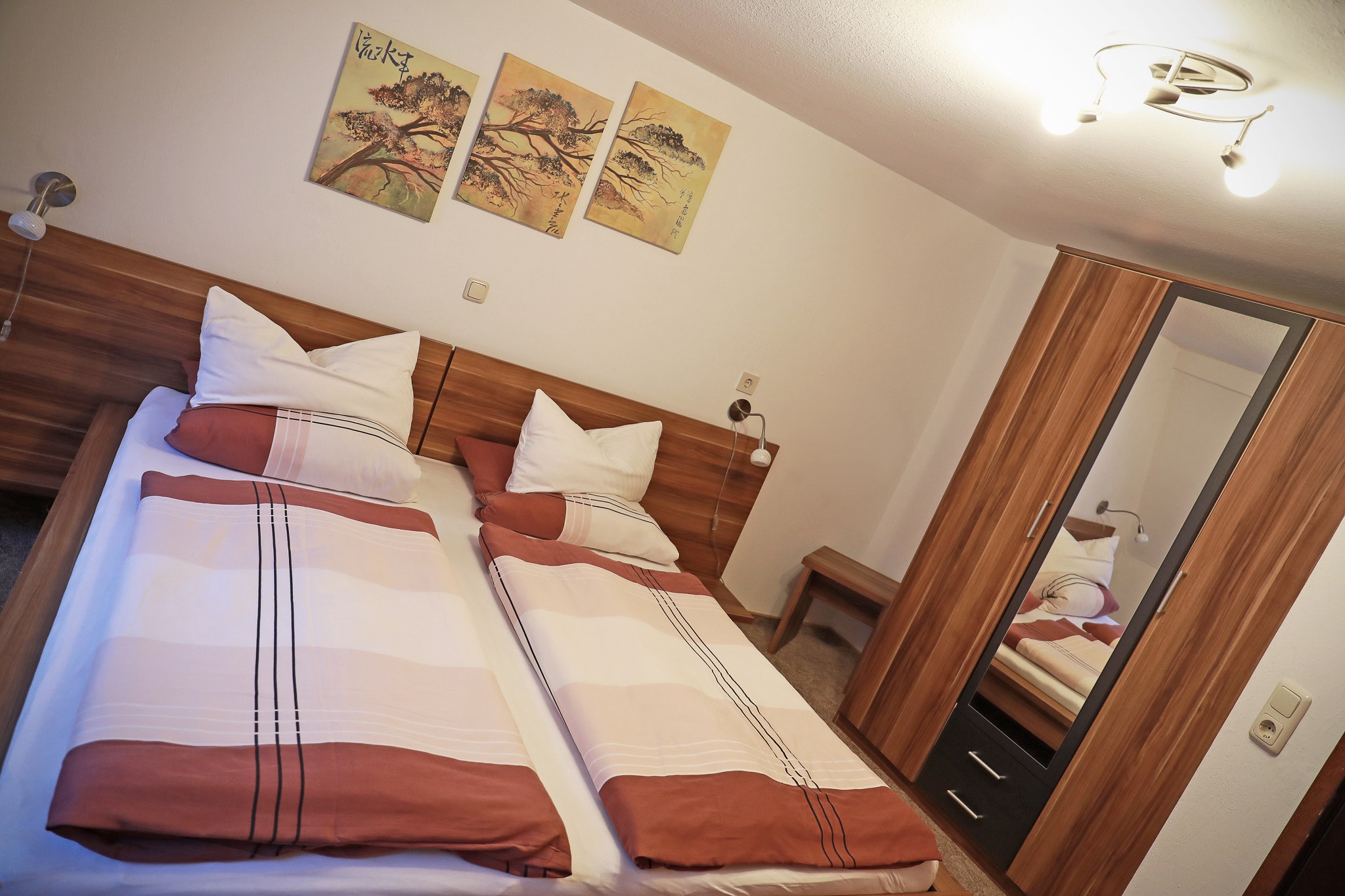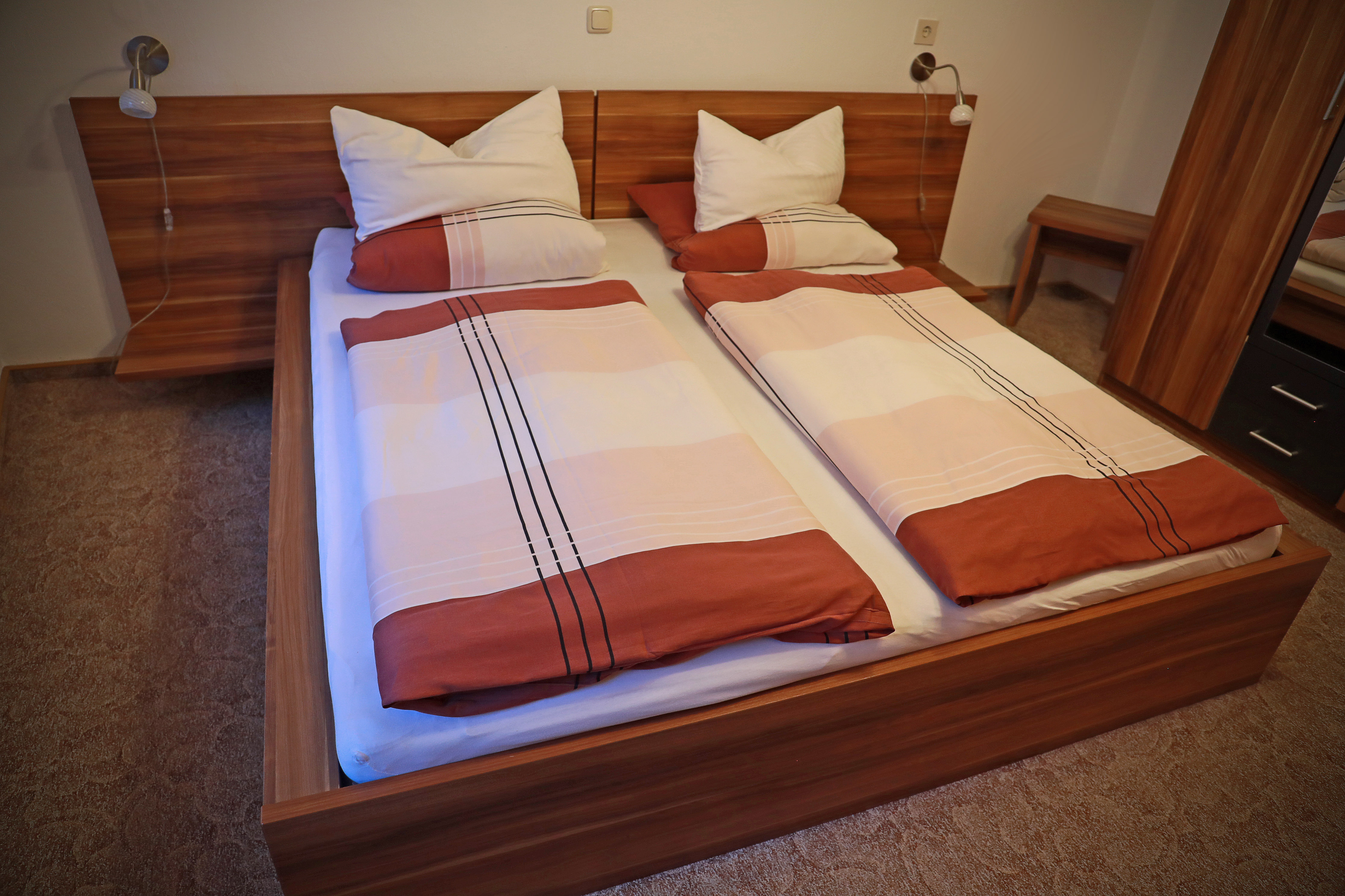 Das schöne Schlafzimmer hat ein Doppelbett, Kleiderschrank und Sideboard. Im Einzelzimmmer ist 1 Bett und ein Kleiderschrank.