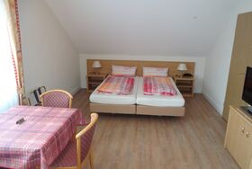 Einraumappartement Nr.3 (ca 35 qm) befinden sich zwei Boxspringbetten (trennbar) und