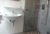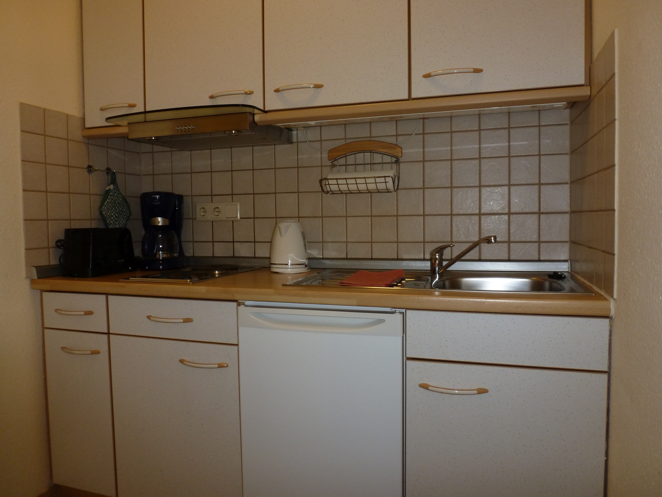 Küchenzeile und neue barierefreie Dusche mit WC.