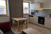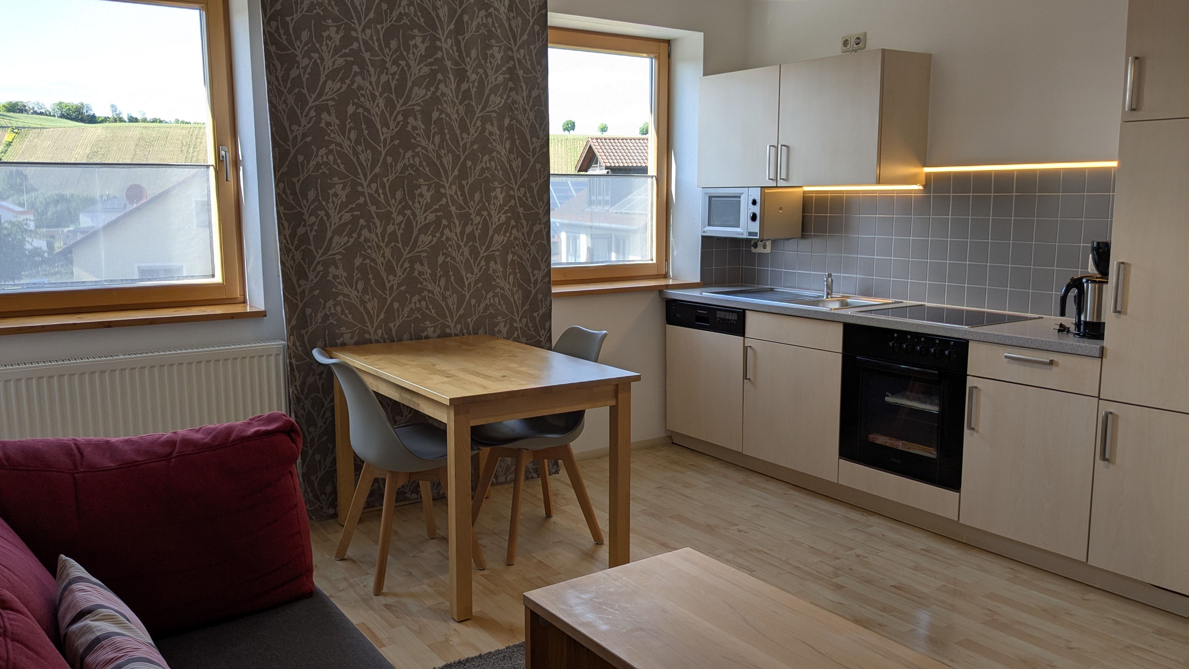 Die Wohnung hat ca. 50 m² in Richtung Südosten mit einem großen Balkon (12 m²). Sie besteht aus einem Schlafraum mit Doppelbett und Flat-TV; einer Wohnküche mit Couch und Essplatz, Spülmaschine, Ceranfeld, Backofen, Microwelle, Kühlschrank mit Gefrierfach, Wasserkocher, Kaffeemaschine und Toaster sowie einem Bad mit Dusche, WC, Waschtisch, Kosmetikspiegel, Fön, Handtuchheizkörper, Fußbodenheizung und Außenfenster.