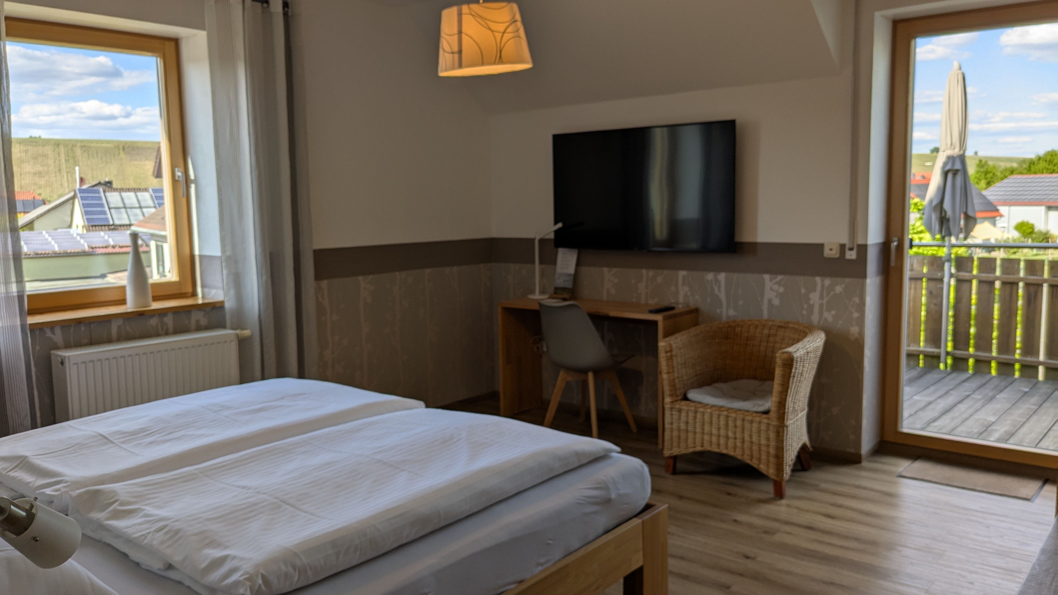 Je Wohnung: 1 Balkon (junge Rebe 2 Balkone), Bad mit DU/WC und Außenfenster, 2 Flat-TV und WLAN (im kompletten Haus).