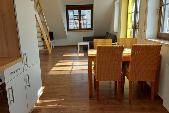 Geniessen Sie in unserem großzügigem Galerie-Appartement (60qm) mit Balkon Ihren Aufenthalt.