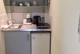 Das Doppelzimmer Bijou ist etwa 20m² groß und verfügt über ein Badezimmer, eine Kochnische mit Kochplatte, Kaffemaschine und Kühlschrank, SAT-TV, Radio, WLan und einen separaten Eingang.