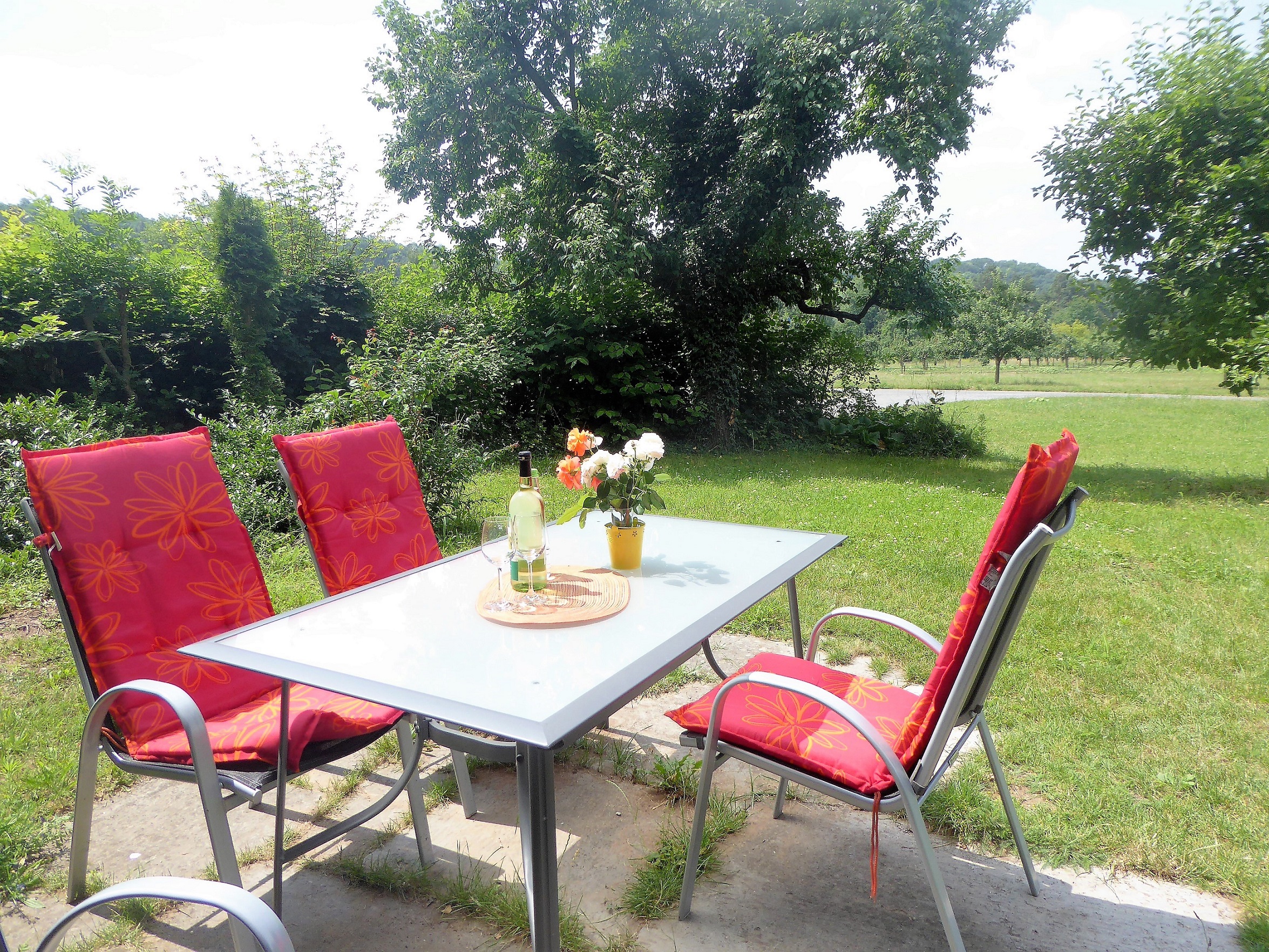 Der Elgersheimer Hof liegt an der Volkacher Mainschleife am Ortsrand von Fahr, umrahmt von Wiesen und Weinbergen und direkt am Maintalradweg.