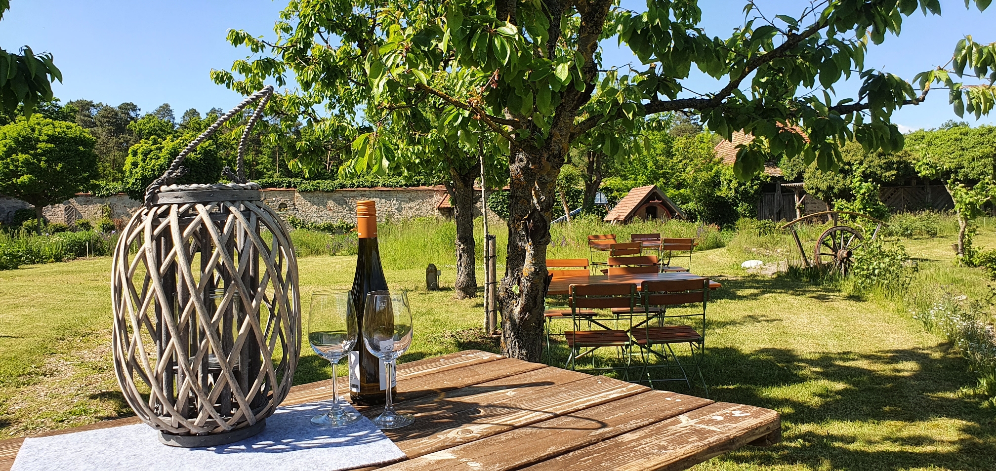 Die Ursprünge des ehemaligen Klosterhofes - direkt am Wald und Wasser gelegen - reichen zurück bis ins 11. Jahrhundert. Die ehemalige Nutzung als Kloster erkennt man heute noch an der gut erhaltenen Klostermauer. Von Efeu üppig überwuchert umschließt sie den Garten und gibt dem Hof seine besondere Atmosphäre.