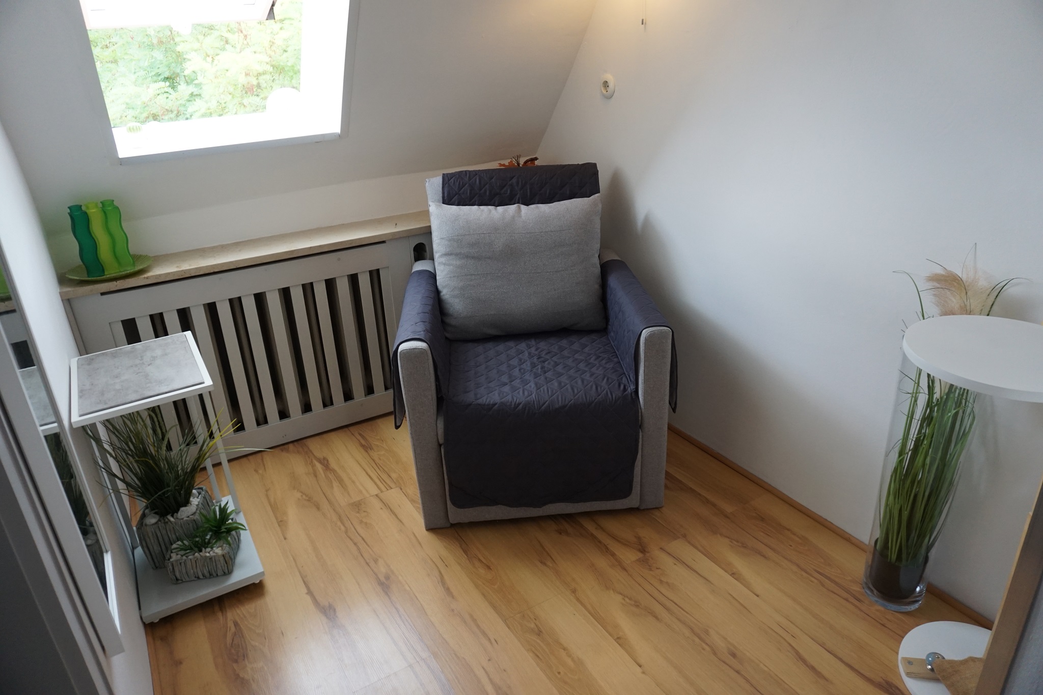 Das erste Schlafzimmer (1. Etage) ist mit einem Doppelbett ausgestattet. Im zweiten Schlafzimmer (1. Etage) gibt es zusätzlich zu einem Doppelbett einen kleinen nach Süden gerichteten Balkon, von dem Sie die Aussicht in das Baunachtal genießen können. Zum Lesen und Entspannen ist noch ein zweites kleines Wohnzimmer für Sie da. Das zweite Bad (1. Stock) mit Dusche und WC ist ebenfalls liebevoll mit Fön und Handtücher für Sie vorbereitet.
