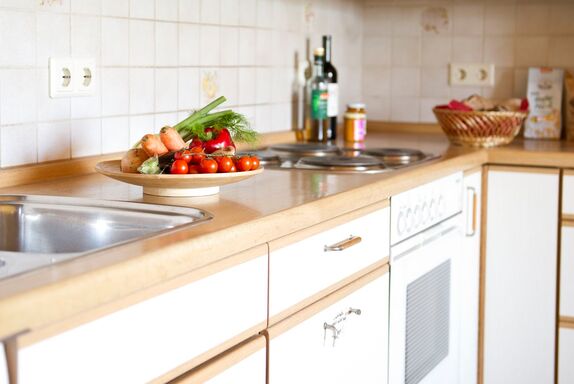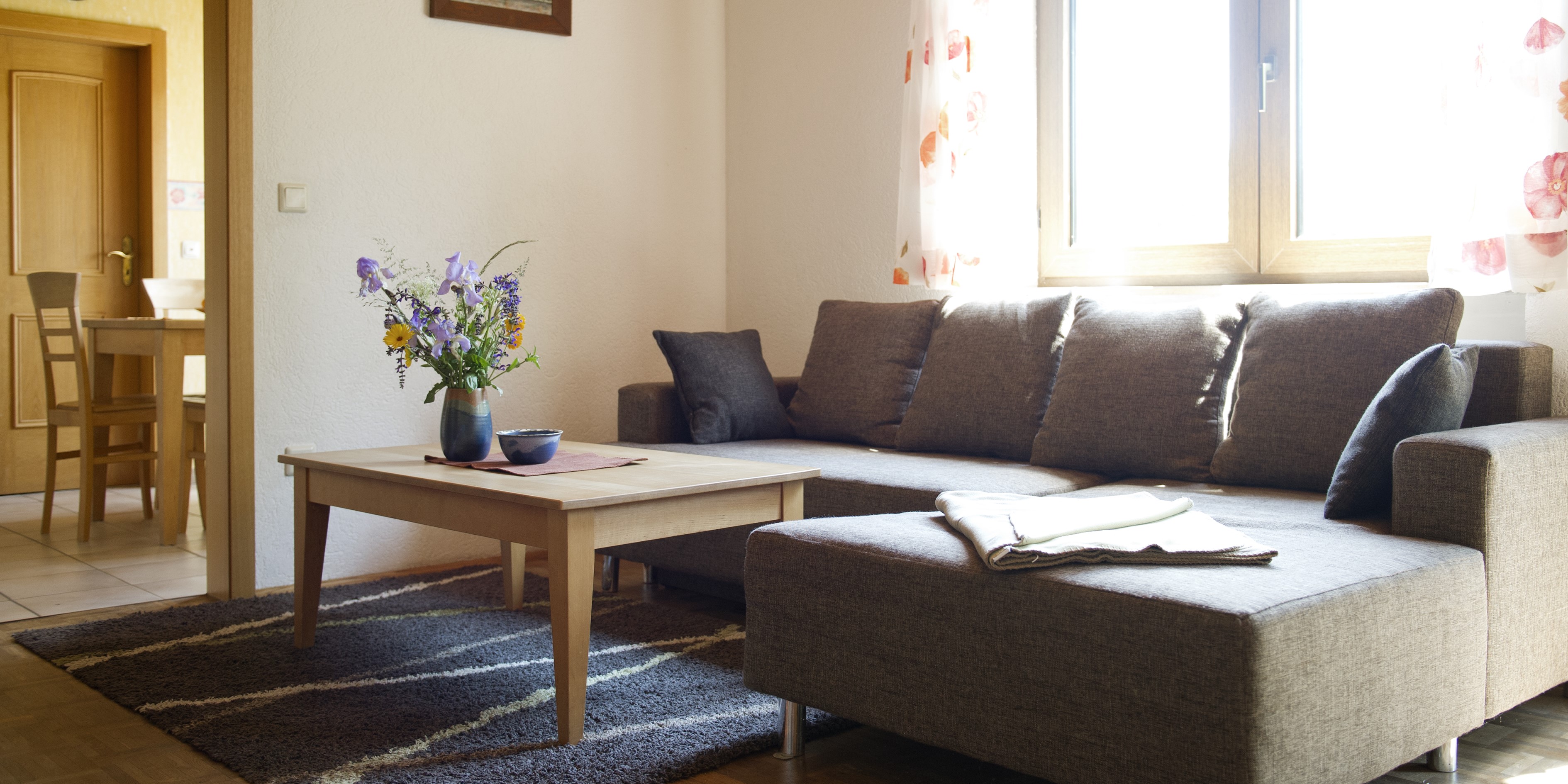 Die Wohnung Weideblick ist ca. 110m² groß und sehr schön mit naturbelassenen Vollholzmöbeln vom Schreiner, geölten Parkett- und Fliesenböden eingerichtet.