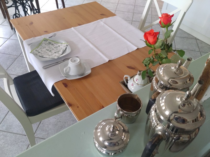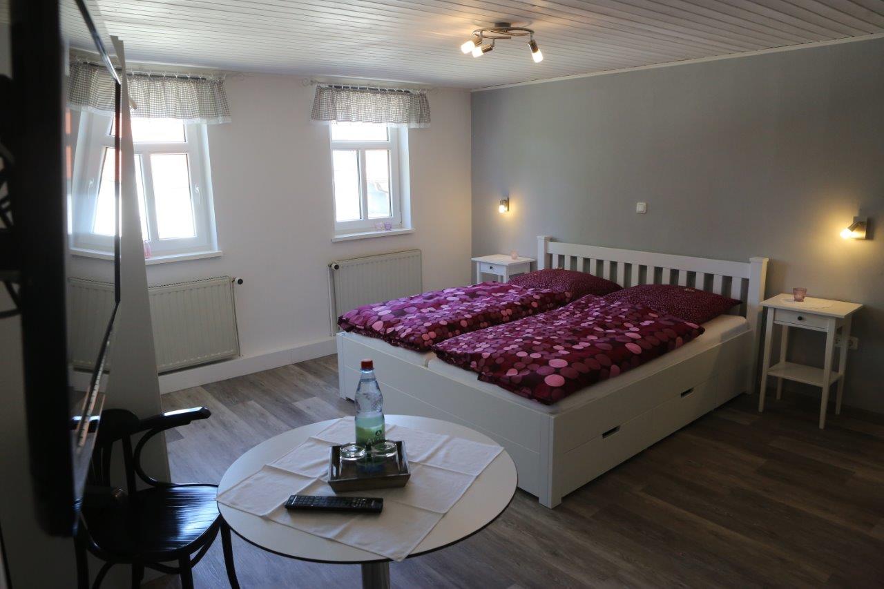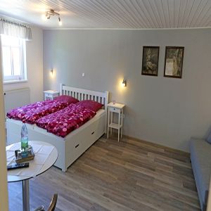 Die ganze Pension ist mit Liebe zum Detail eingerichtet und die Zimmer im gemütlichen Landhausstil. Alle Zimmer mit Dusche/WC, TV und kostenfreiem W-Lan. Eine kleine Teeküche mit Kühlschrank, Mikrowelle, Kochgelegenheit und eine Terrasse zur gemeinsamen Nutzung ist vorhanden, ebenso kostenfreie Unterstellmöglichkeiten für Fahr-/Motorräder und Parkplätze mit 2 E-Ladeplätzen für PKW.