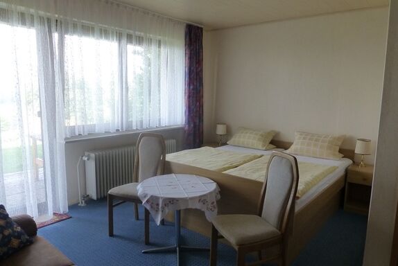 In sehr ruhiger Südhanglage mit herrlicher Fernsicht bietet unser Haus zwei Ferienwohnungen, rauchfrei, mit jeweils Küche, Schlafraum und Wohnraum mit Schlafcouch, Du/WC, SAT-TV und Terrasse / Liegewiese. Bettwäsche, Dusch- und Handtücher werden gestellt. PKW-Stellplatz vorhanden.