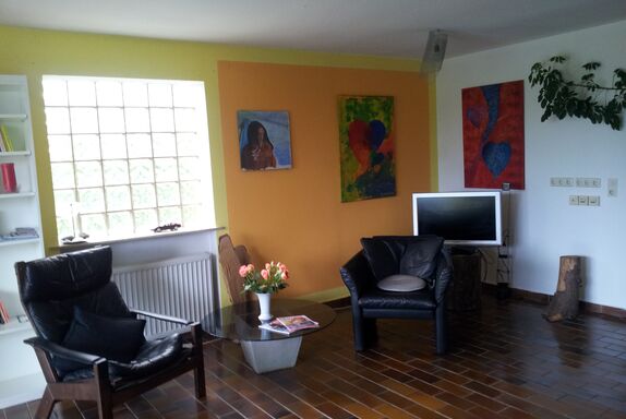 Ferienwohnung (ca.100qm) für bis zu 6 Personen. Grundstück hat Hanglage. Terrasse der Wohnung befindet sich auf Gartenebene. Erholen Sie sich in unserer mod. einger. Nichtraucher FeWo (ruhige Südhanglage) mit Terrasse u. Fernblick. Die Küche ist zugänglich durch das Wohnzimmer und mit Spülmaschine, Ceranfeld/Backofen, Kühl-Gefrierkombination, Mikrowelle ausgestattet. Wohnzimmer Schlafcouch und Essecke. Alle Schlafräume Einzelbetten, mit Du/WC oder Bad/WC (hier Waschmaschine). Betten hochwertige Matratzen. Exkl. Ausst.: Kamin. Waschmaschine vorhanden. SAT TV, Zentralheizung. Buchungen über einen längeren Zeitraum auf Anfrage möglich. Monteure willkommen. Jedes Zimmer hat eigenes Bad! W-LAN!