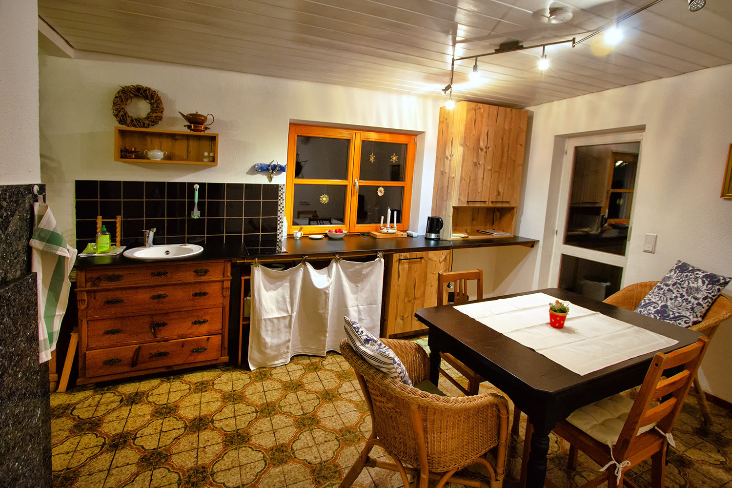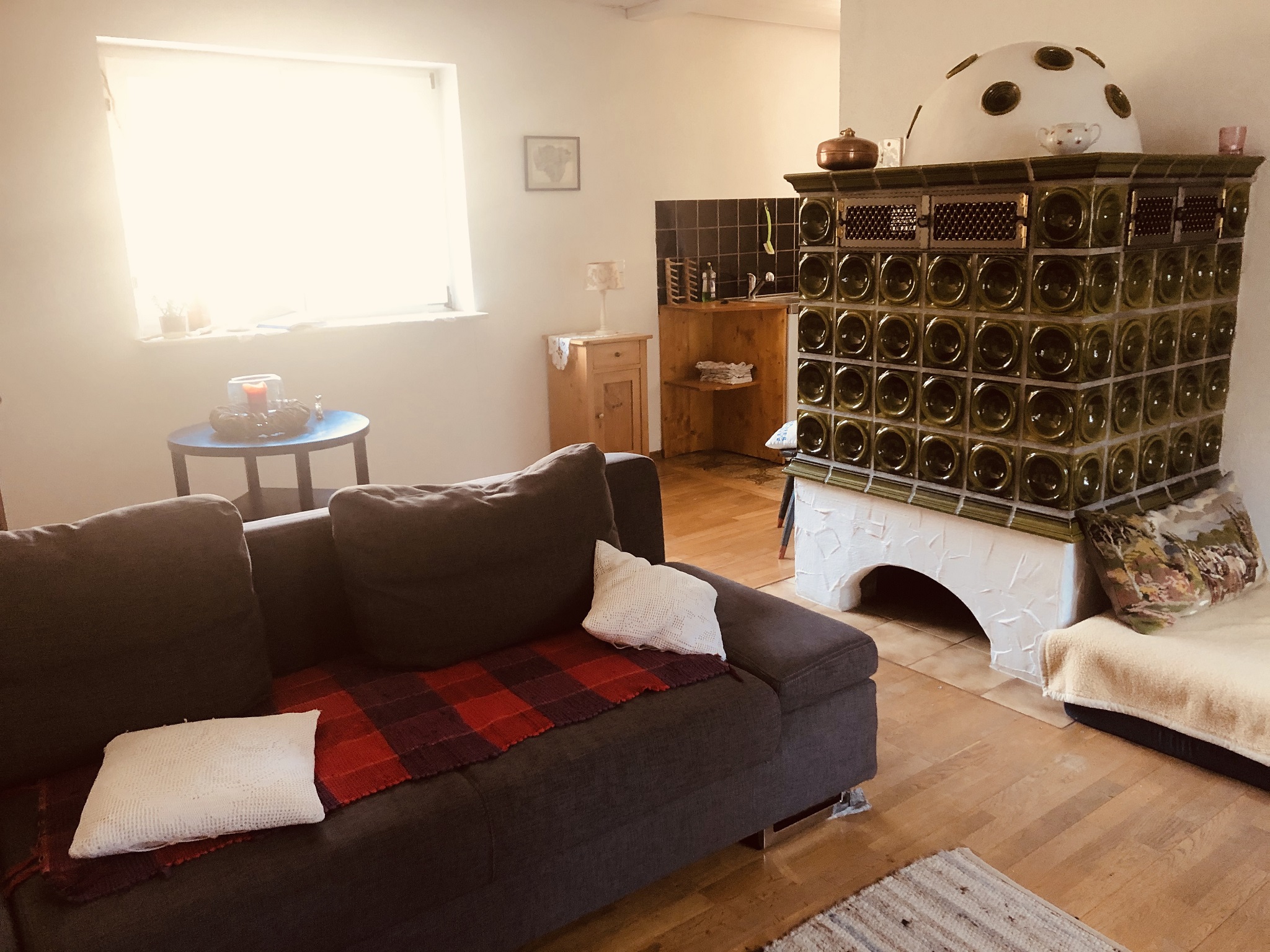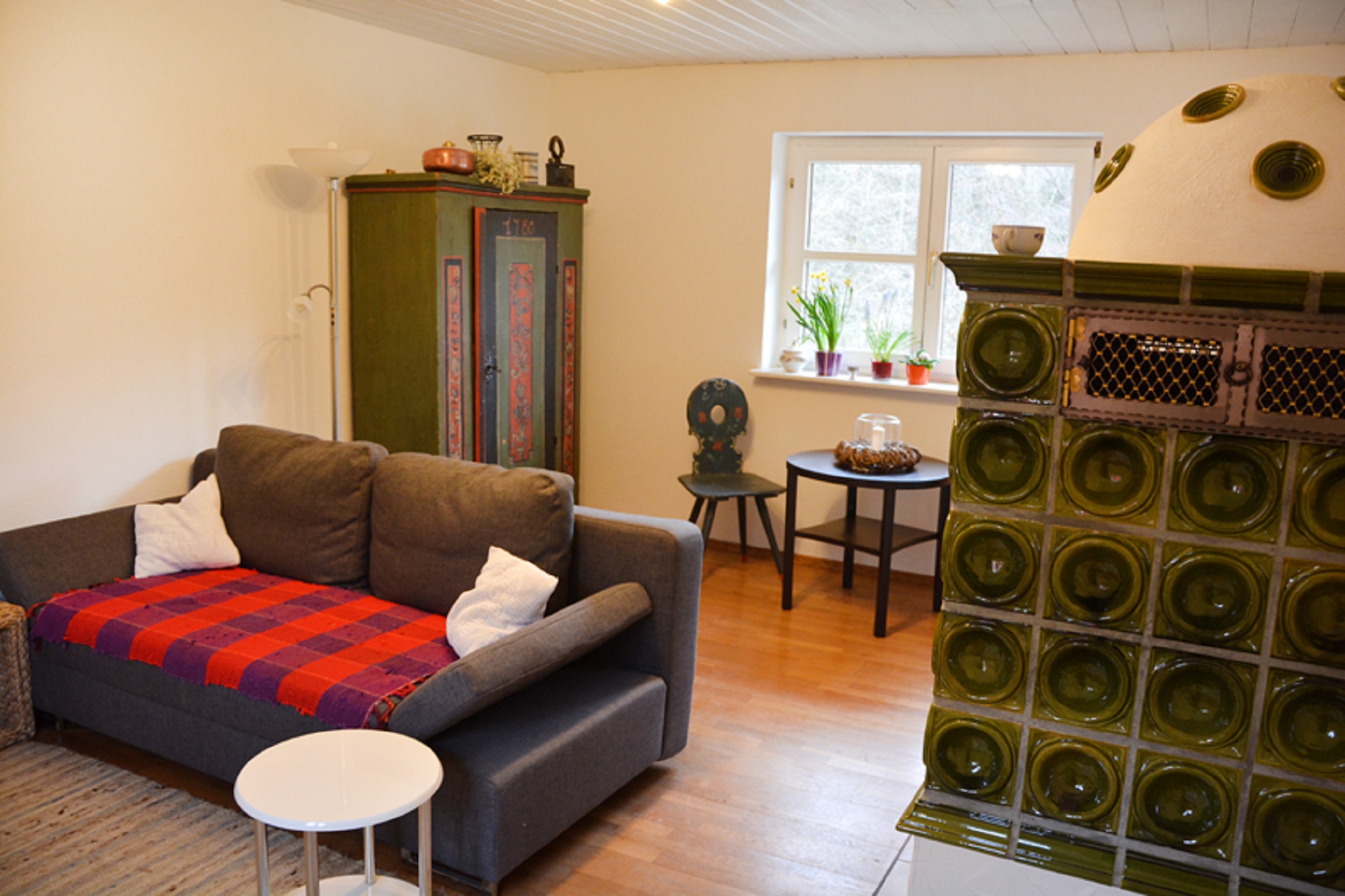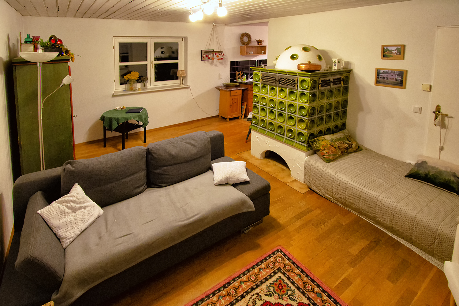 In der Heizperiode wird im Wohnbereich (Kachelofen) ausschließlich mit Holz geheizt. Elektroheizung in diesem Bereich muss je nach Bedarf zusätzlich verrechnet werden.
