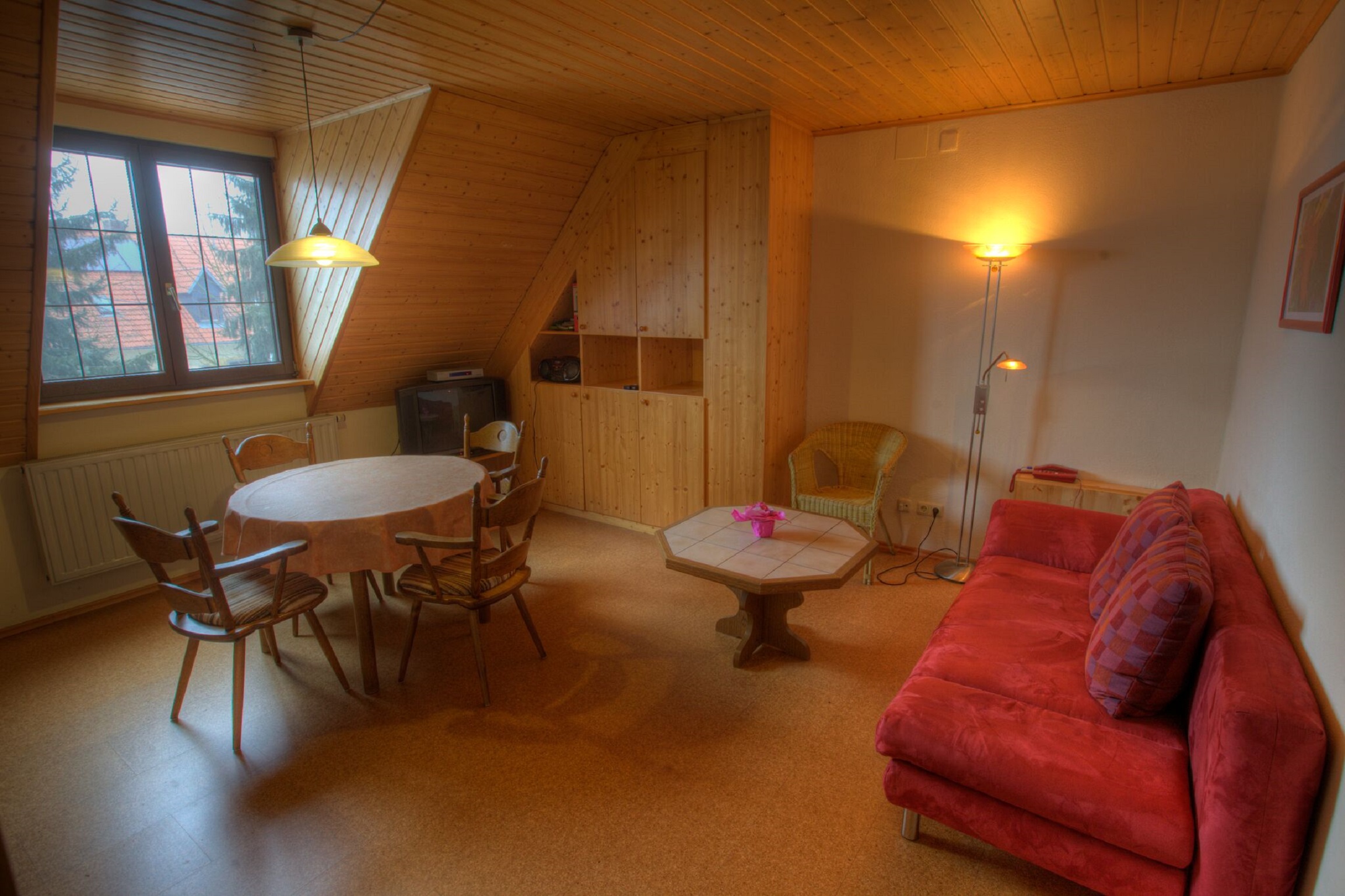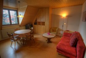 Die liebevoll eingerichtete 50qm große Ferienwohnung „Thymian“ bietet Platz für 3-6 Personen und befindet sich auf dem Ferienhof in idyllischer Einzellage. Die Wohnung verfügt über 2 Schlafzimmer mit 1 Doppelbett, 1 Zustellbett, 1 Etagenbett und 1 Funktionssofa, sowie einen geräumigen Wohnraum mit Essecke, eine voll ausgestattete Küche mit Spülmaschine und Mikrowelle und ein Bad. WLAN und Parkmöglichkeit sind kostenlos vorhanden. Die sanfte Hügellandschaft der Haßberge ist ideal zum Radeln, Wandern und Reiten. Ein beheiztes Schwimmbad, Reitpferde (für Anfänger und Könner), ein Angelweiher, Wellness-Angebote, Sauna, Spielzimmer, Spielplatz, Fußballwiese, Beachvolleyballfeld, Tischtennisplatte und viele Streicheltiere sind geboten. - Für jeden der richtige Urlaub!