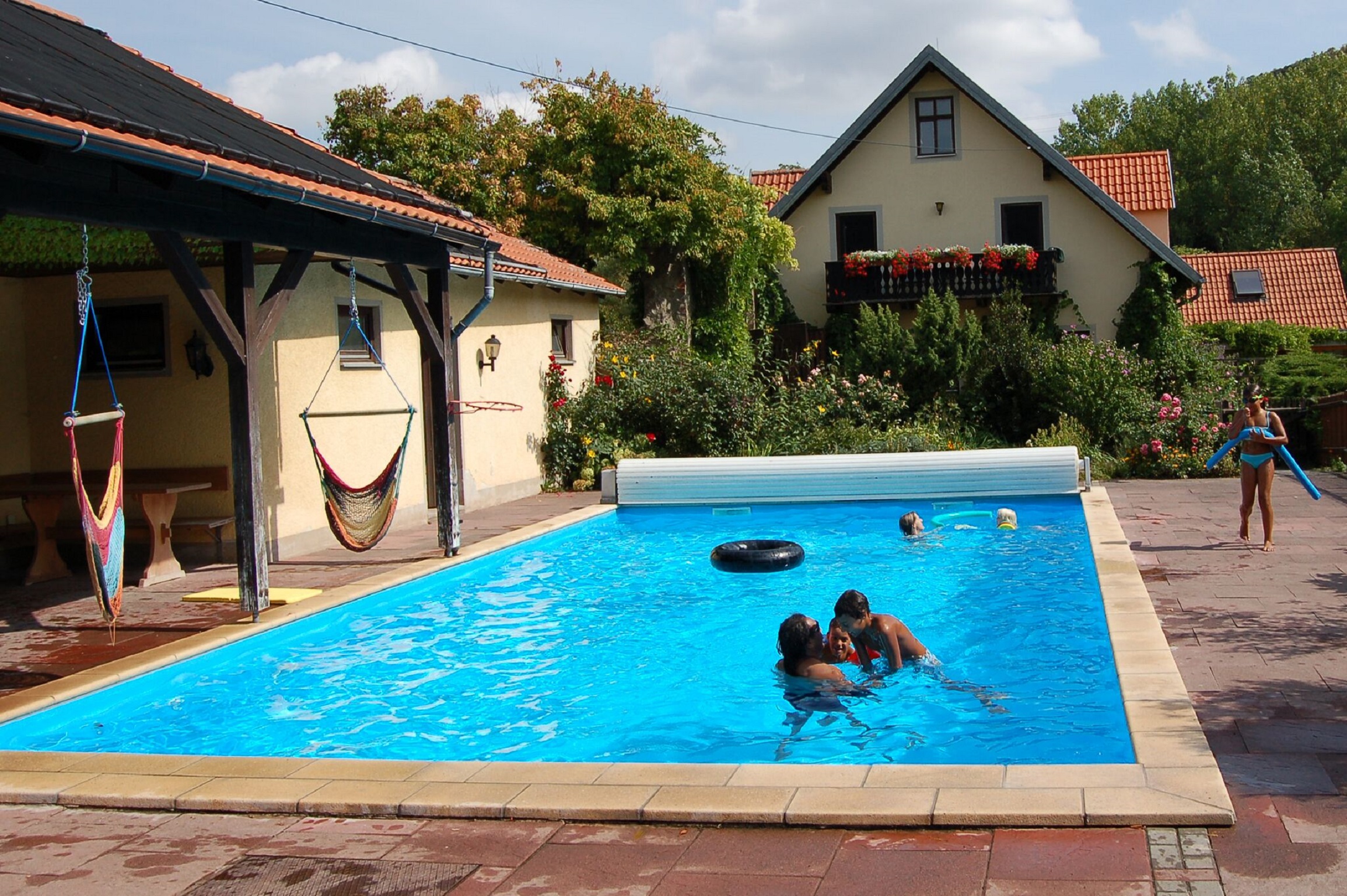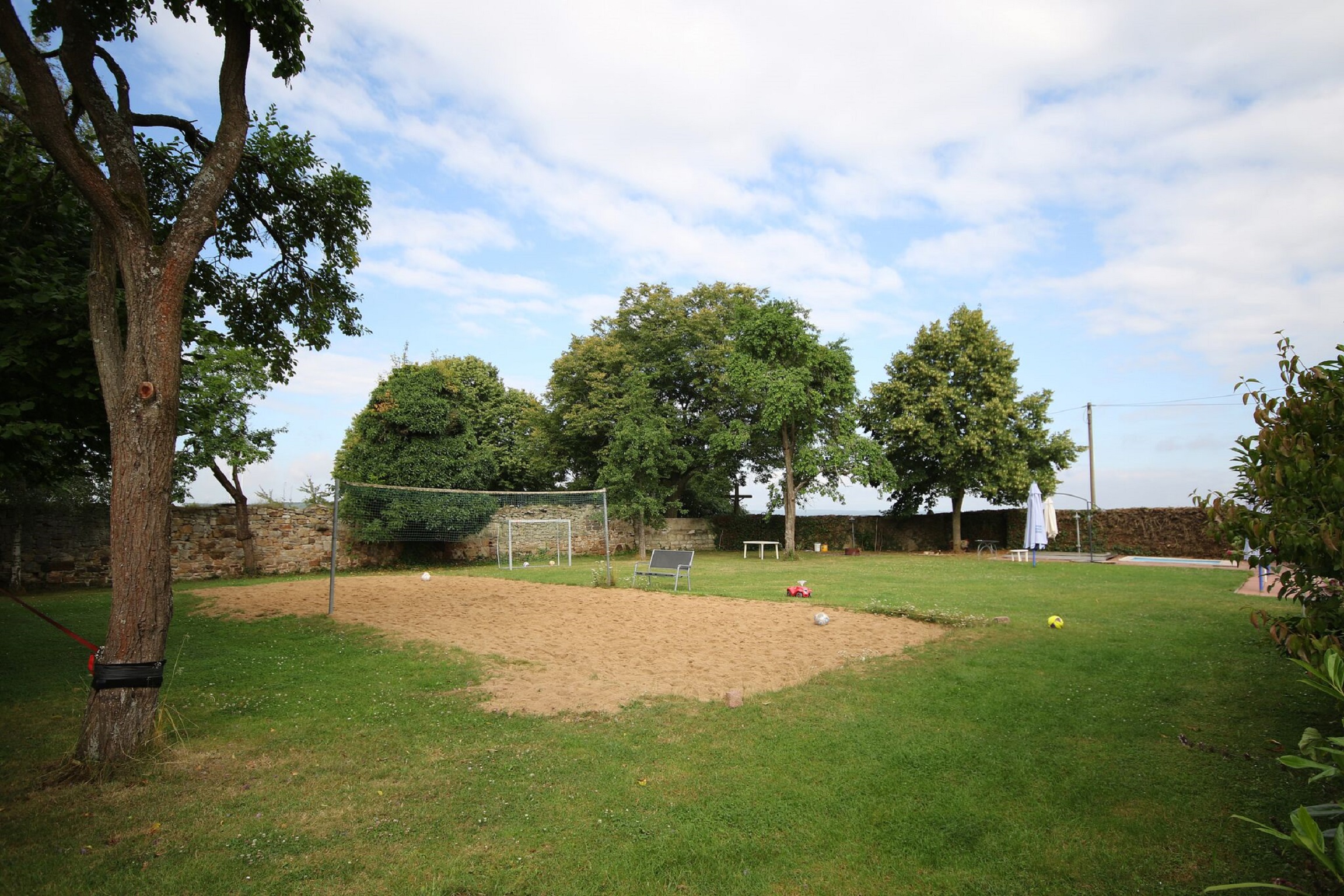Ankommen und wohlfühlen auf unserem Ferienhof in idyllischer Einzellage. Die sanfte Hügellandschaft der Haßberge ist ideal zum Radeln, Wandern und Reiten. Beheiztes Schwimmbad, Reitpferde (für Anfänger und Könner), Angelweiher, Wellness-Angebote, Spielplatz, Fußballwiese, Beachvolleyball, Tischtennis, Sauna, Fahrzeugpark für Groß und Klein und viele Streicheltiere - Für jeden der richtige Urlaub! Unser Ferienhaus bietet Platz für 10 - 16 Personen.