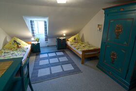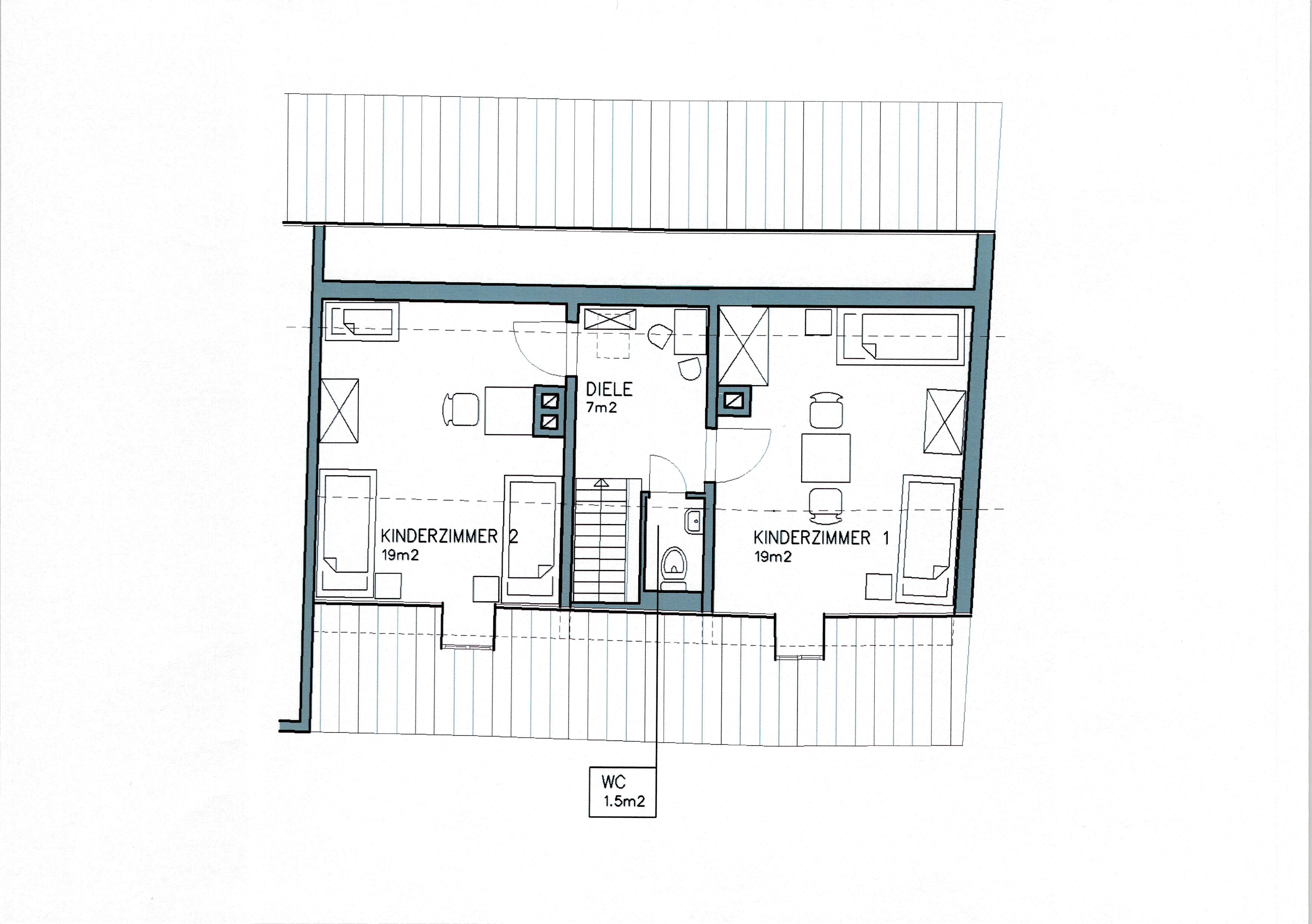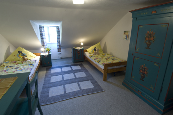 Im DG, 47 m², zwei Zweibettzimmer, WC und Flur, die Kinder wohnen auf ihrer eigenen Etage.