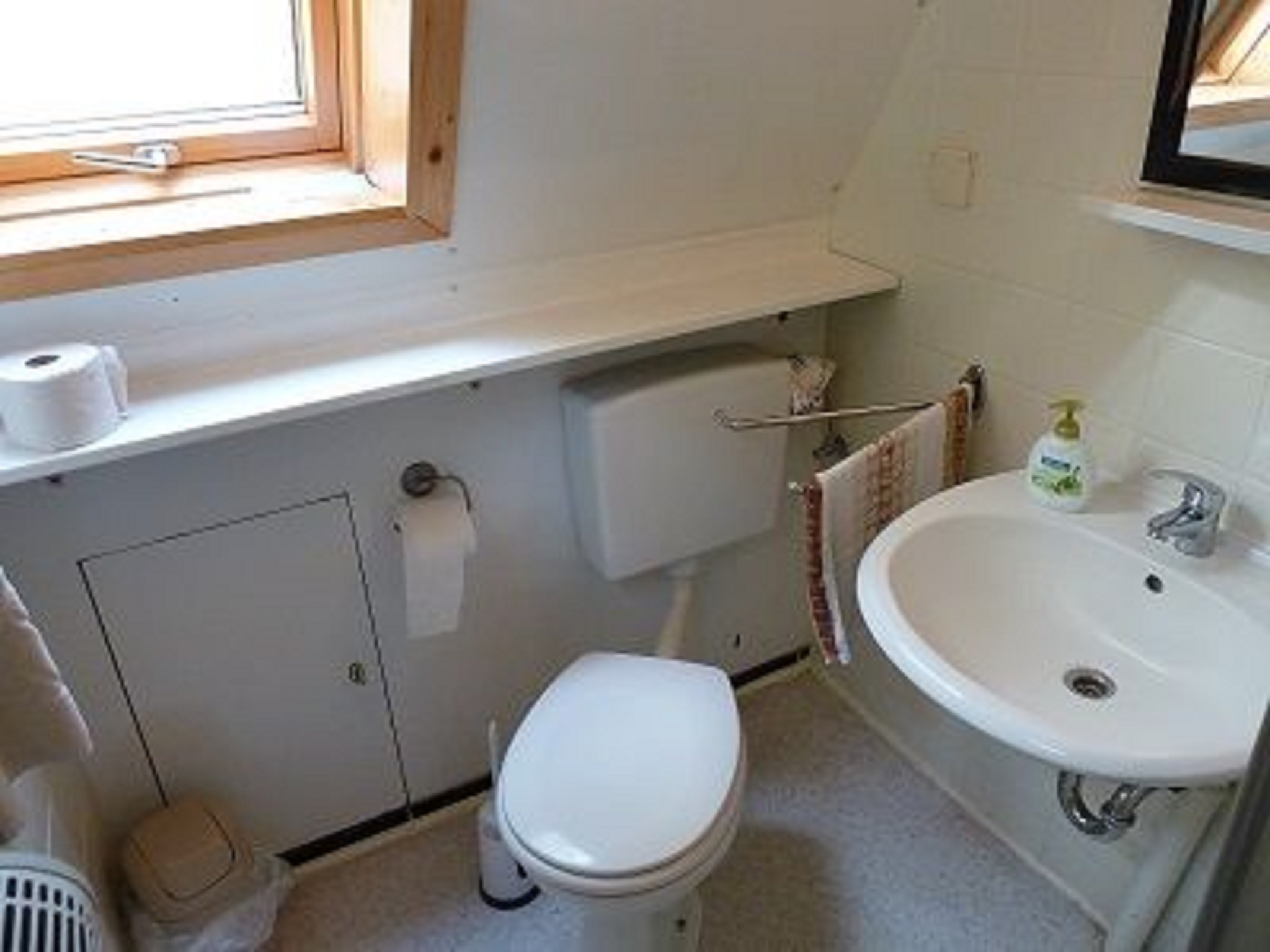 Im Erdgeschoss ist außerdem ein kleines Bad mit Dusche, Waschbecken und WC.
