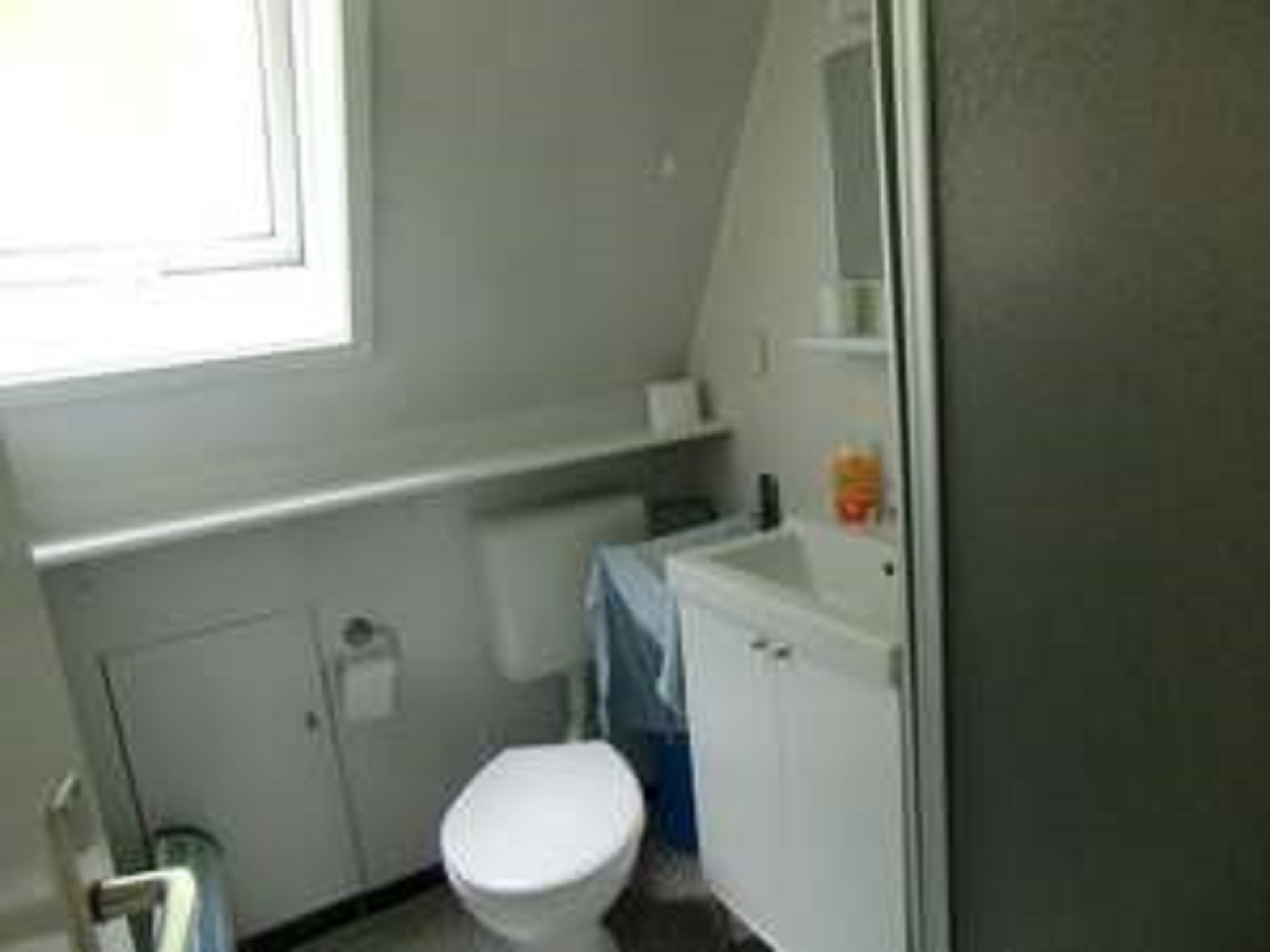 Im Erdgeschoss ist außerdem ein kleines Bad mit Dusche, Waschbecken und WC.