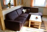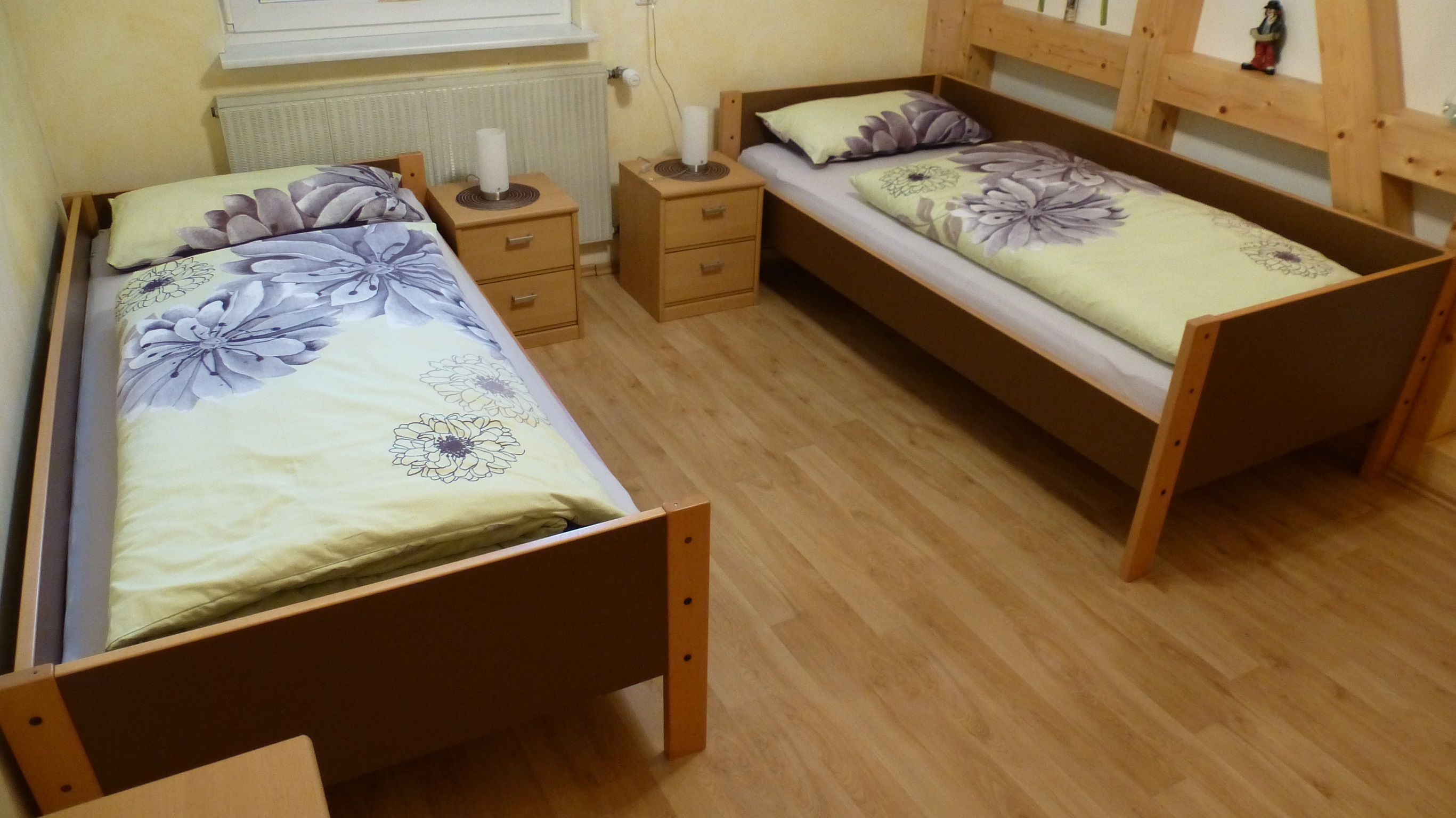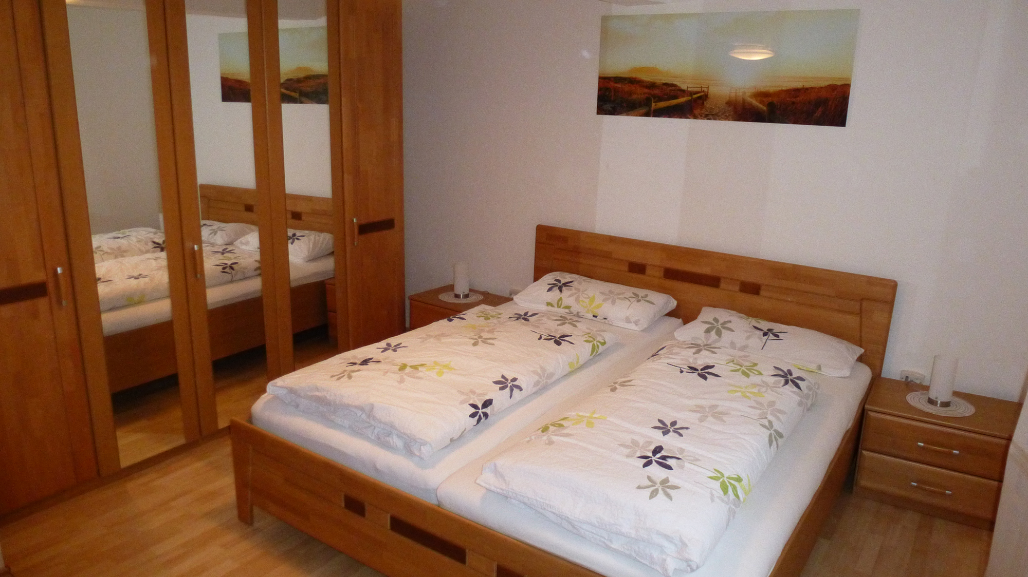 Unsere Ferienwohnung ist 100 m² groß und vollständig eingerichtet. Es gibt 3 Schlafzimmer für insgesamt 6 Personen. Zwei Schlafzimmer sind mit einem Doppelbett versehen und ein Schlafzimmer mit 2 Einzelbetten. Ein Kinderbett kann zusätzlich aufgestellt werden.