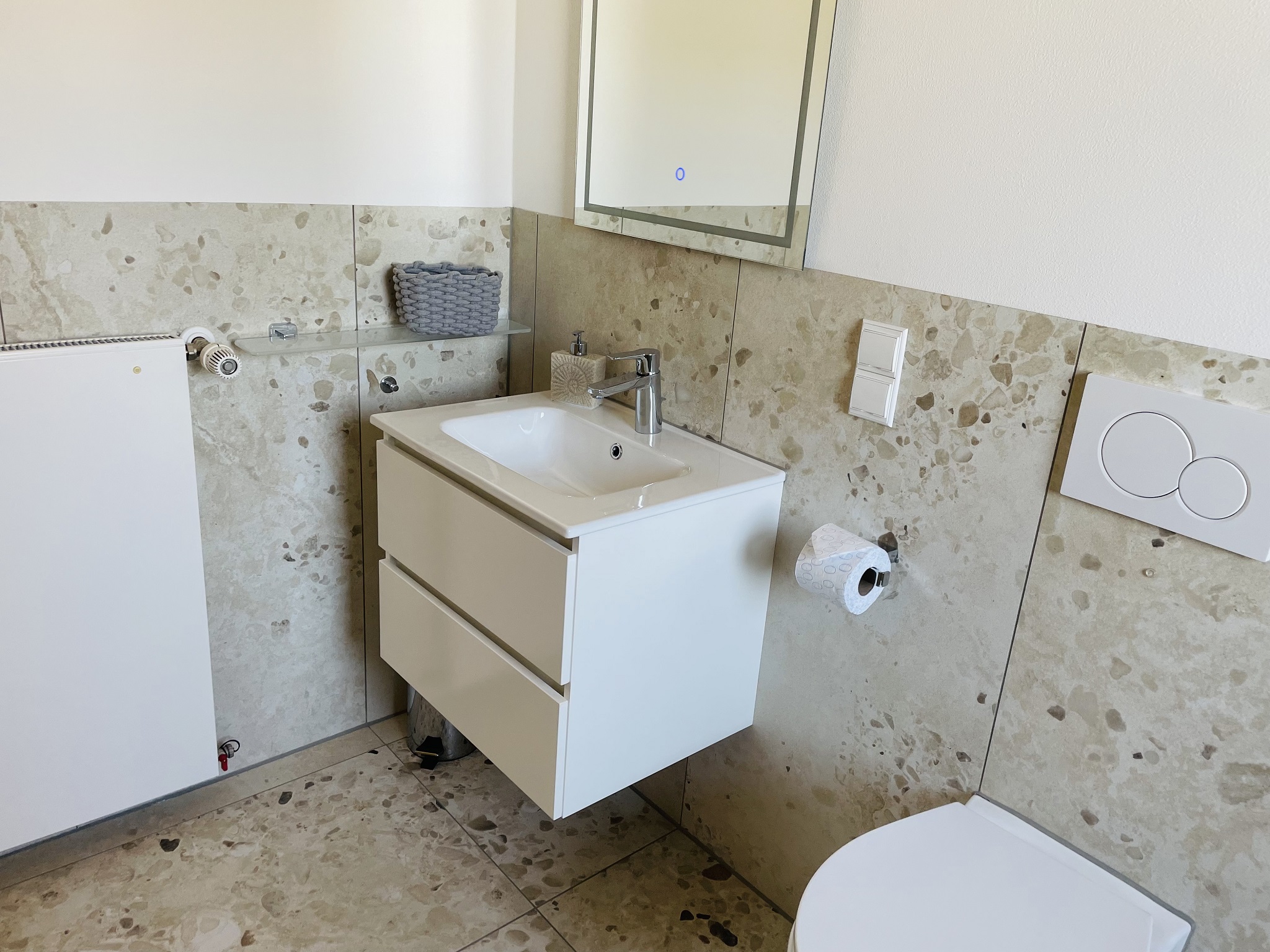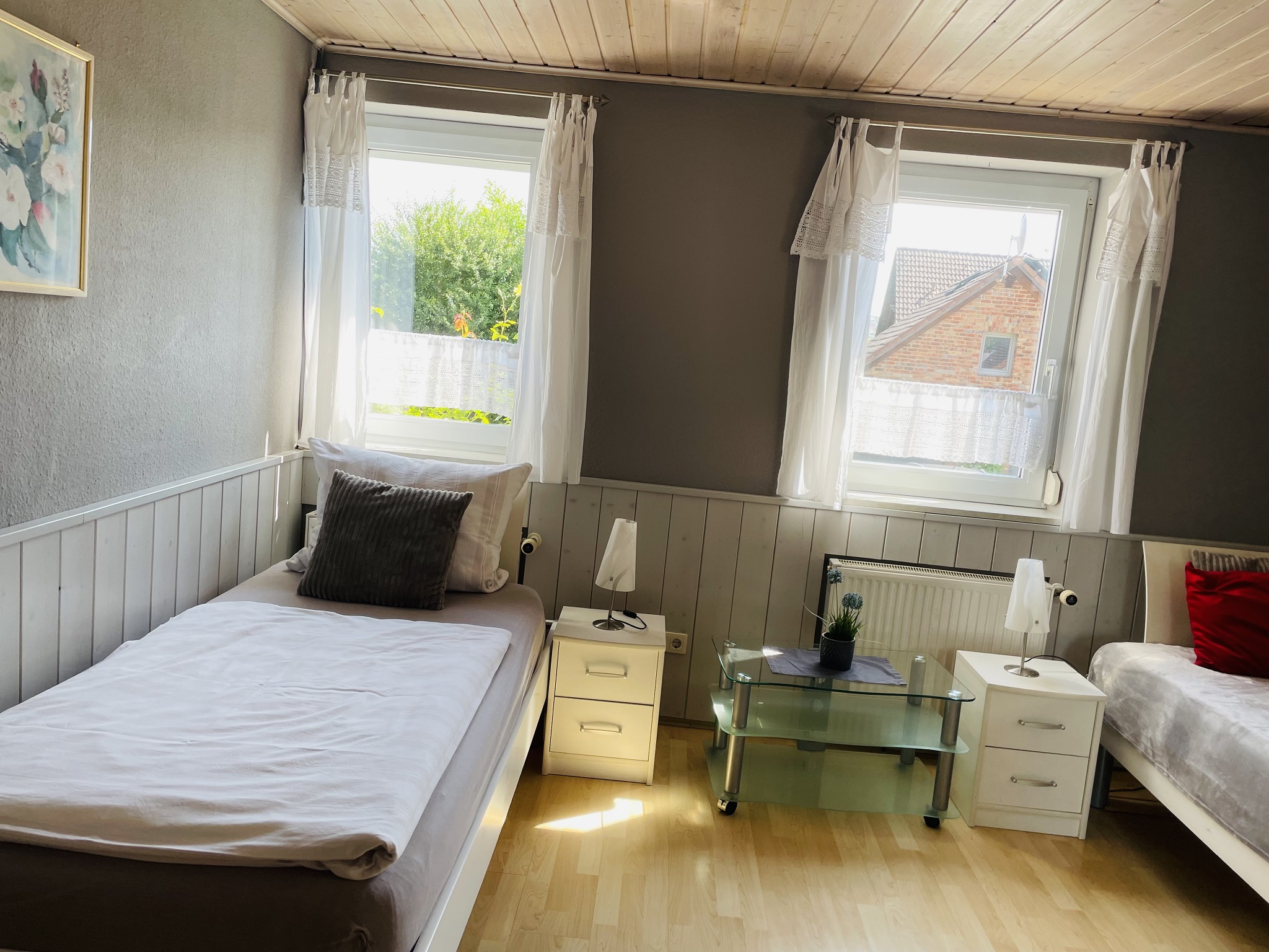 Die 65 qm große Ferienwohnung liegt am Ortsrand von Margetshöchheim bei Würzburg. Die Wohnung hat einen separaten Eingang und liegt im Hochparterre. Sie hat zwei Schlafzimmer mit je zwei Einzelbetten. Die 5. Person schläft auf der Schlafcouch im Wohnbereich. Vom Flur- und Eingangsbereich aus kommen Sie in die große, voll ausgestattete Küche mit Wasserkocher, Kaffeemaschine, Mikrowelle, Kühlschrank mit Gefrierfach, Backofen, Töpfe, Pfannen, Geschirr, Besteck, Geschirrtücher. Im Anschluss daran, liegt das Ess- und Wohnzimmer mit Fernseher. Das Badezimmer ist mit einer Dusche ausgestattet und ist somit barrierefrei.Toilette, Waschbecken, Handtücher, Kosmetikspiegel, Kosmetikartikel und Föhn. Ein Parkplatz und WLAN sind kostenfrei verfügbar. Mitgebrachte Fahrräder können bequem abgestellt werden. Die Innenstadt Würzburg erreichen Sie bequem mit dem Bus, der etwa 80 m entfernt hält. Im Ort finden Sie Banken, Bäcker, Metzger und eine Einkaufsmöglichkeit, indem Sie auch Biowaren erhalten.