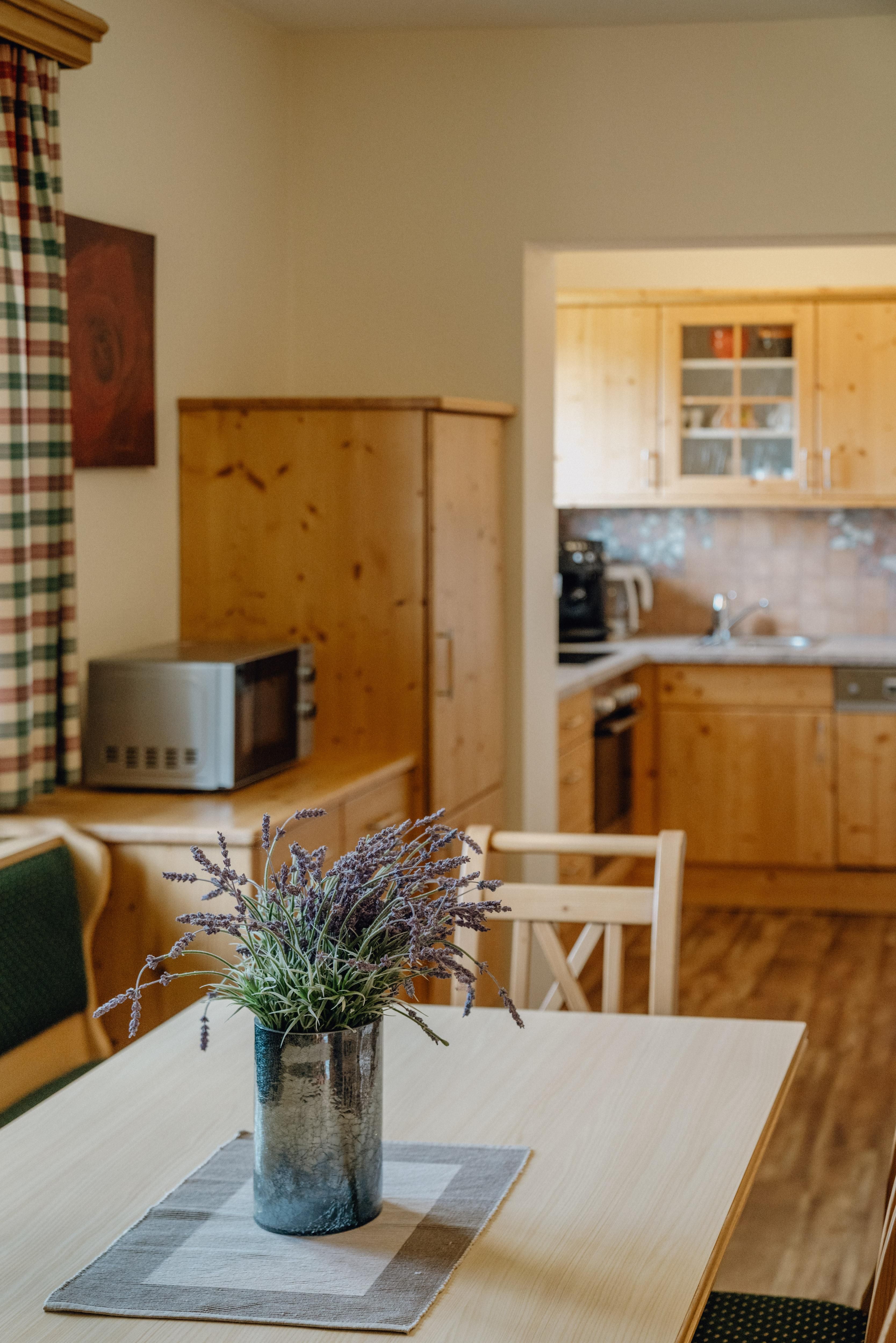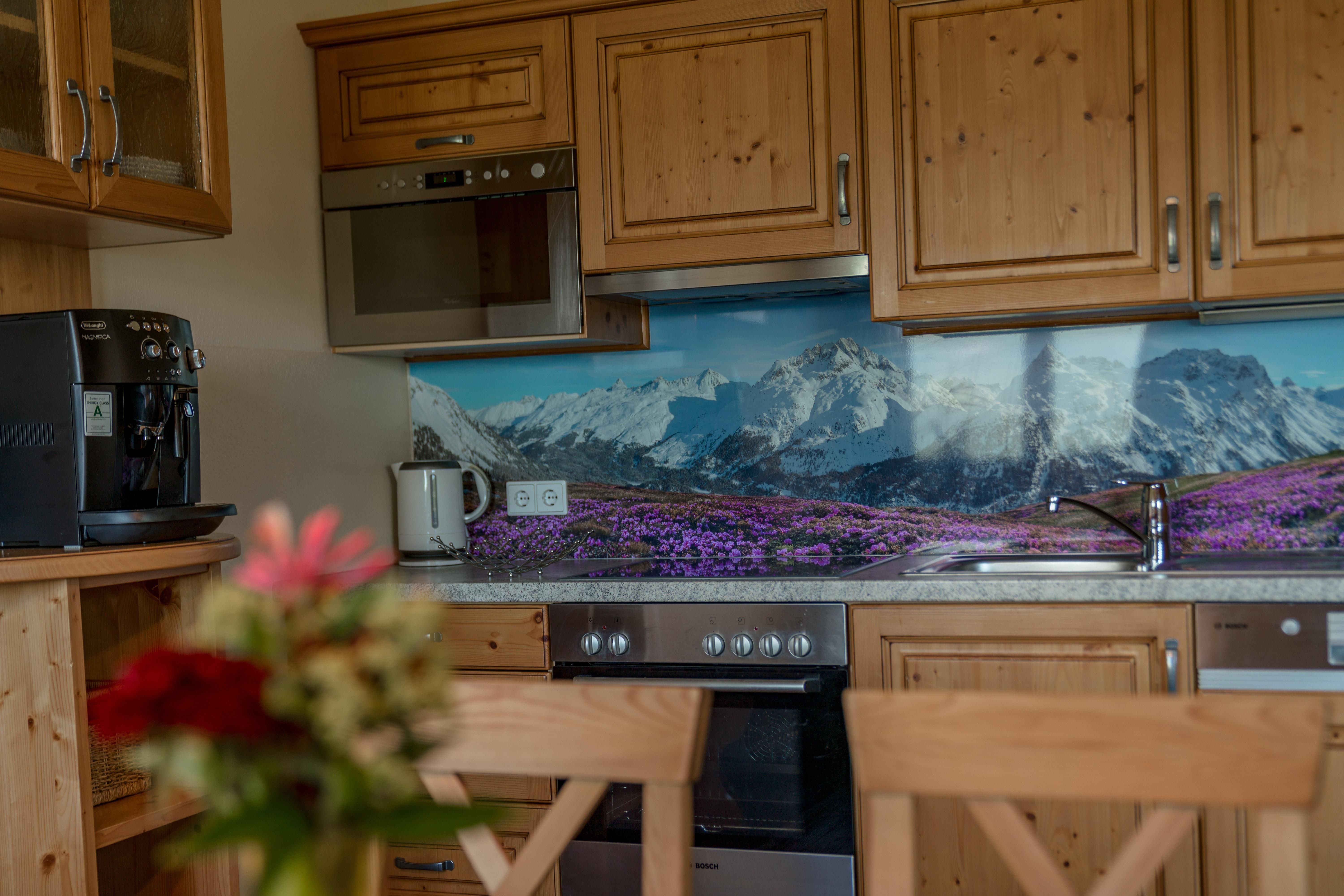 Umgeben von Wiesen und Wäldern in ruhiger, sonniger Lage auf 1.100 m Seehöhe wohnen Sie in unseren 5 neu errichteten Nichtraucher-Appartements. Wir bieten verschiedene Wohnungstypen für 2 bis 7 Personen an. Je nach Wohnungsgröße stehen Ihnen ein bis zwei getrennte Schlafzimmer zur Verfügung. Jedes Appartement hat zusätzlich ein Wohn-Schlafzimmer, eine voll ausgestattete Küche sowie Badezimmer mit Dusche und WC. Sat-TV und gratis W-Lan sind im Haus Taxegger selbstverständlich vorhanden. Was Sie aber ganz besonderes genießen werden, ist die faszinierende Aussicht vom Balkon der Appartements auf das Dachstein-Massiv.