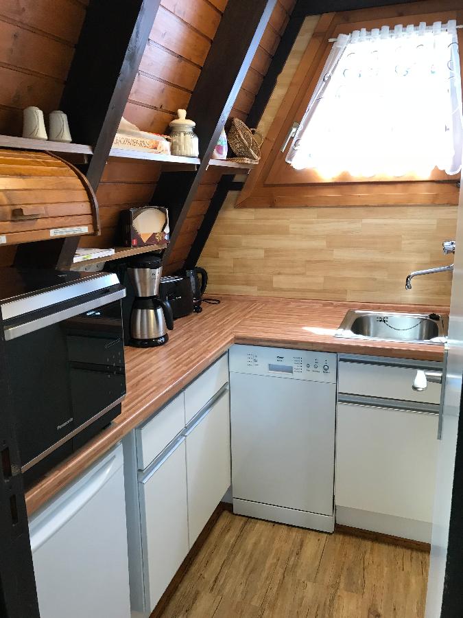 Mikrowelle, 2 Kochplatten, Spüle, Spülmaschine, Kühlschrank mit 3*** Gefrierfach, Kaffeemaschine, Wasserkocher, Toaster,