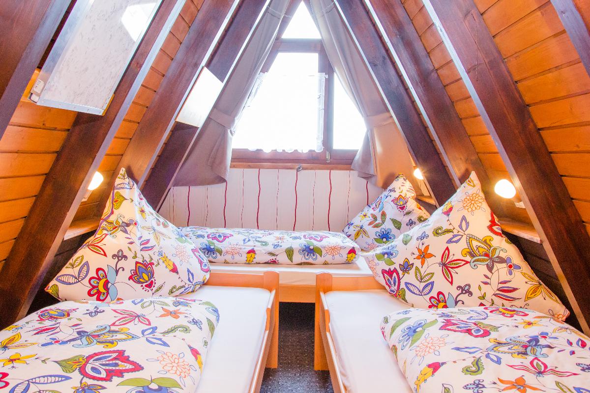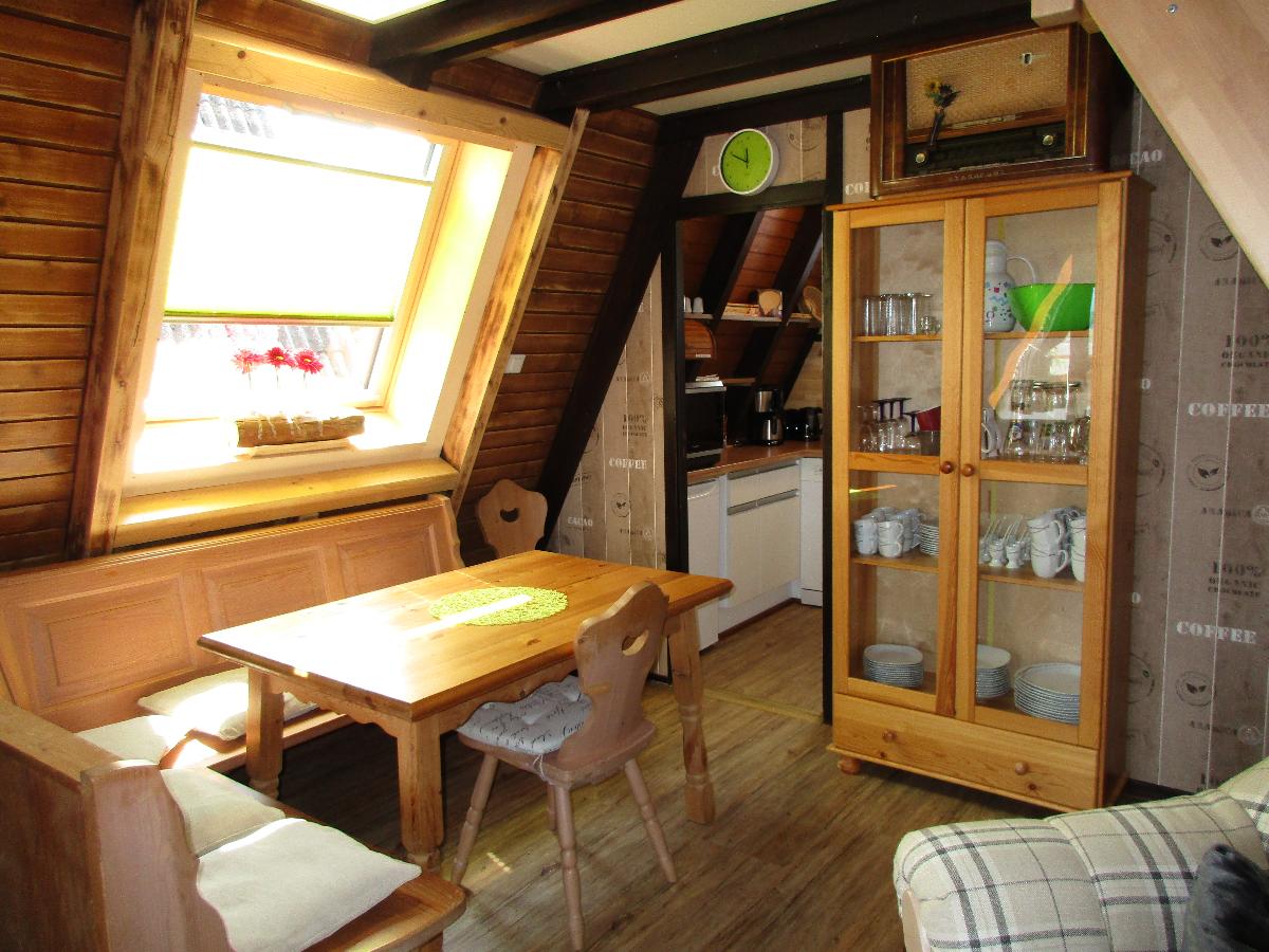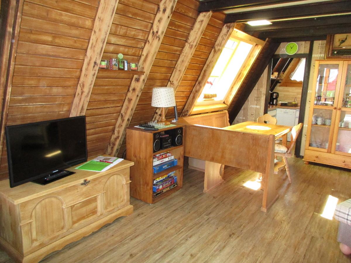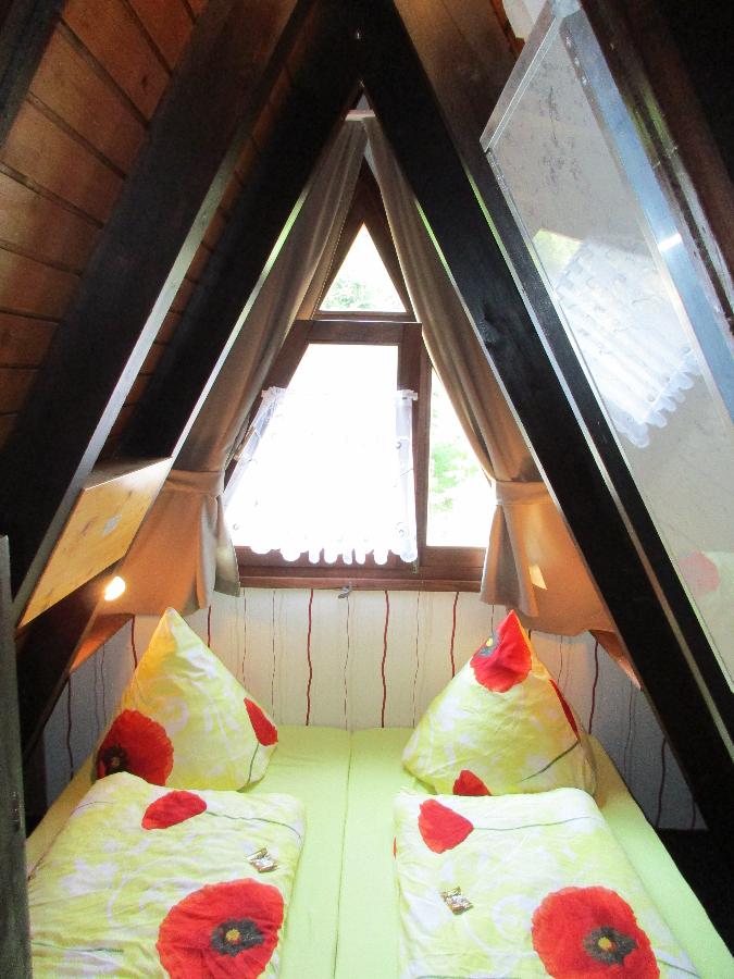 Erholen Sie sich in unserem gemütlichen Nur-Dach-Haus inmitten einer reizvollen Landschaft, mit herrlichem Ausblick, am Waldesrand und doch sehr zentral gelegen. Das Haus bietet auf 53 Quadratmetern alles, was man für einen erholsamen Urlaub braucht: einen gemütlichen Wohn- und Essbereich mit Küchenzeile und einem Bad im Erdgeschoss, sowie bis zu fünf Schlafplätze in zwei getrennten Räumen unter dem Dach (1 Doppelbett, 3 Einzelbetten).