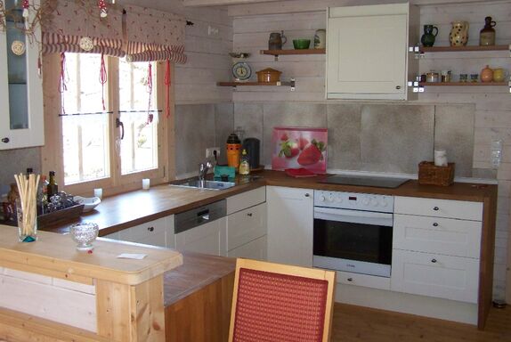 Unser Ferienhaus ist ein reines Holzhaus in ruhiger Hanglage. Es gibt drei getrennte Schlafzimmer für bis zu 7 Personen, zusätzlich 2 Schlafsofas, zweimal Du/WC, eine komfortable Wohnküche mit schöner Essecke und offenem Wohnbereich.
