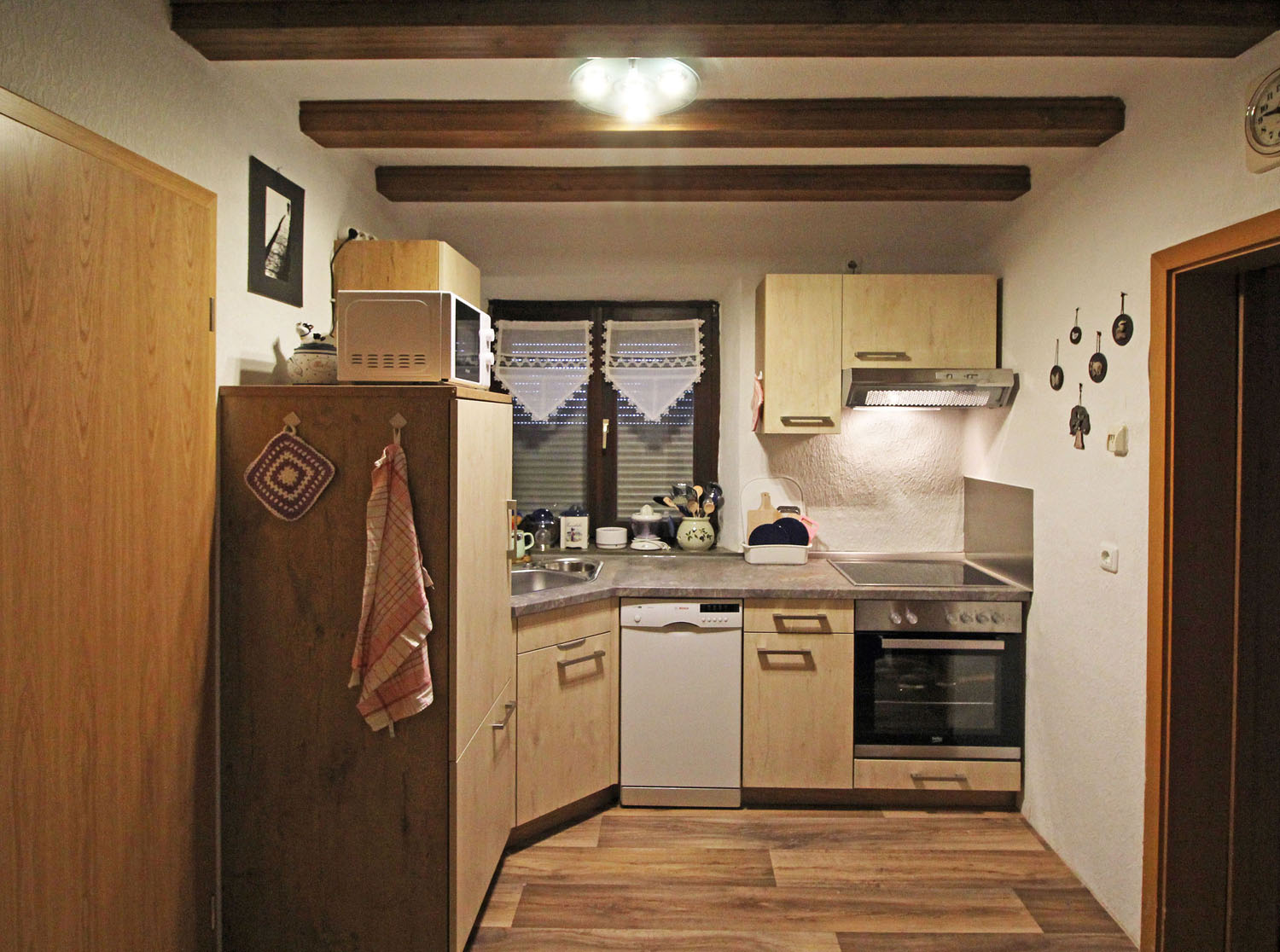 Voll ausgestattete Einbauküche mit Herd, Geschirrspülmaschine, Kühlschrank, Mikrowelle, Brotschneidemaschine, Sandwichtoaster, Eierkocher, Saftpresse, Dunstabzugshaube, Türgegensprechanlage mit Video..
