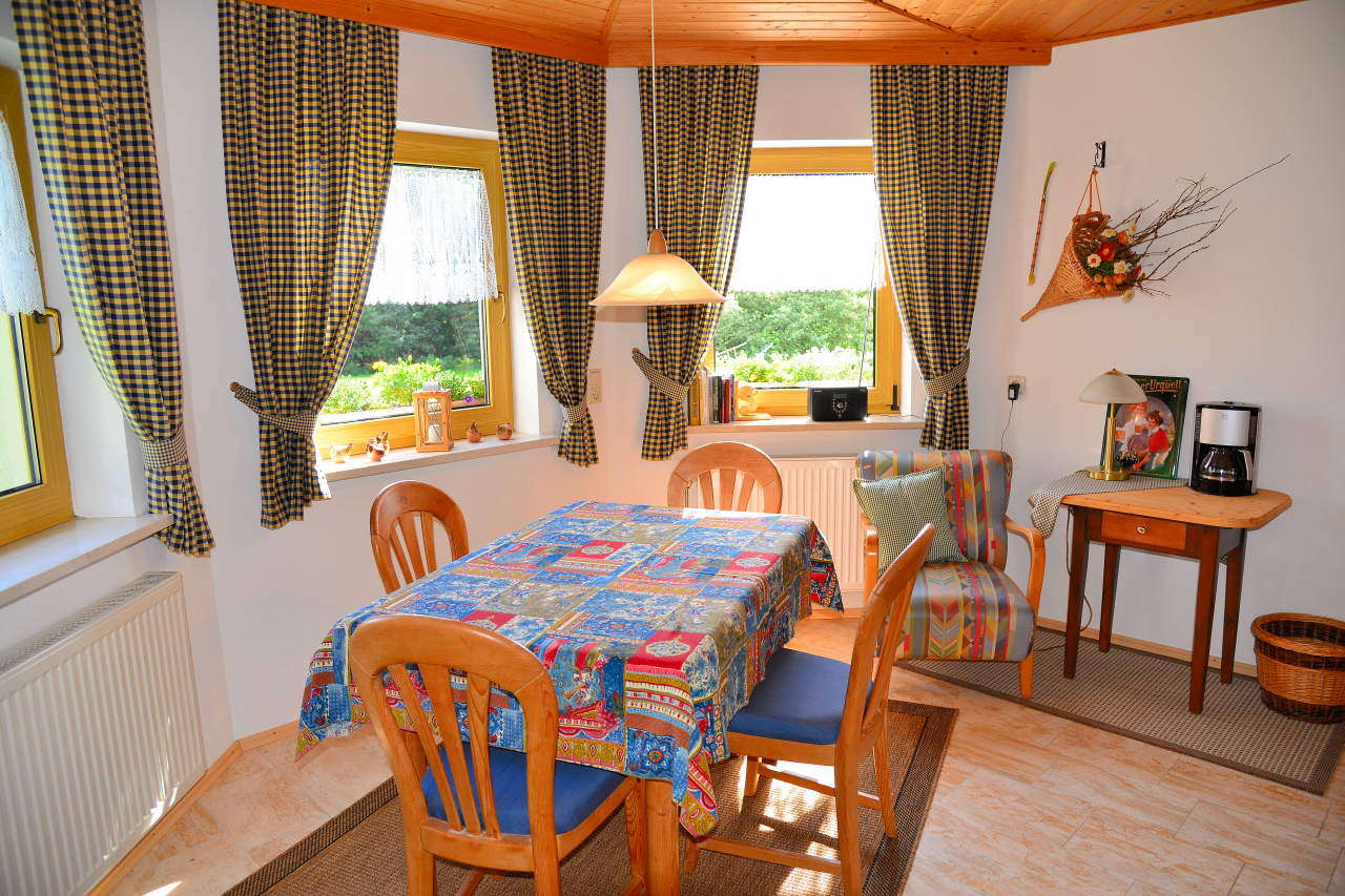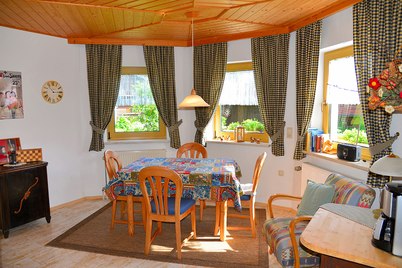 Unsere Ferienwohnung liegt im zauberhaften Luftkurort Fleckl, am Südhang des Ochsenkopfes, in sehr schöner, ruhiger Umgebung. Im Sommer und Winter bieten sich direkt vom Wohnhaus aus interessante Wanderwege und Wanderziele an. Langlaufloipen und Skipisten befinden sich ganz in der Nähe. Auch die örtliche Skischule erreichen Sie in ca 10 Minuten Gehzeit. Zur Seilschwebebahn Ochsenkopf Süd laufen Sie ebenfalls nur 10 Minuten. Die Ferienwohnung hat einen ebenerdigen Eingang und ist ca. 45 Quadratmeter groß. Die Wohnung ist sehr liebevoll und gemütlich eingerichtet, die Ausstattung wurde von unserem Großvater geschreinert. Bettwäsche, Handtücher, Geschirrtücher, Decken und Kissen sind reichlich vorhanden. Die sehr gemütliche, helle Wohnküche ist mit hochwertigen Geräten ausgestattet und hat einen Erkerausblick (siehe Foto) in den Garten. In der Küche befindet sich ein digitales Radio und im Wohn/Schlafbereich ein Fernsehgerät. Die Betten wurden vom Großvater höher geschreinert, so dass auch ältere Urlaubsgäste sehr bequem aufstehen können. Direkt vor dem Wohnungseingang, wie Sie auch den Fotos entnehmen können, befindet sich für unsere Gäste eine eigene Terrasse mit gemütlichem Essplatz und Grillmöglichkeit. Eine große Rasenfläche läd ein zum Spielen (Federball, Boccia, Dart... ist vorhanden). Unser Kräutergärtchen mit Tee und Gewürzpflanzen darf von unseren Gästen gerne mitbenutzt werden. Ein Autostellplatz ist vorhanden.