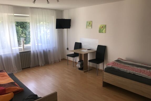 Die 100 qm große Ferienwohnung verfügt über einen Balkon und befindet sich im 1. Stock. Vier Schlafzimmer mit Einzelbetten ermöglichen Aufenthalte für bis zu sechs Personen. Es erwartet Sie eine helle, saubere Wohnung mit großzügiger, komplett ausgestatteter Küche. Die Küche verfügt über Geschirrspüler, Kaffeemaschine, Wasserkocher, 2 Kühlschränke, Mikrowelle, Geschirr, Tisch- und Küchenwäsche, etc. Der Wohnraum verfügt über eine gemütliche Sitzecke und einen Sat-TV. In der Wohnung ist ein Badezimmer mit Dusche, Badewanne und WC. Zudem ist ein zweites separates WC vorhanden. Handtücher und Bettwäsche werden kostenfrei gestellt. Auf Anfrage kann Wäsche gewaschen werden. Alle unsere Wohnungen sind Nichtraucherwohnungen. Auf dem Balkon ist das Rauchen gestattet.Parkplätze sind vorhanden.