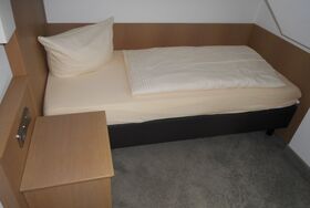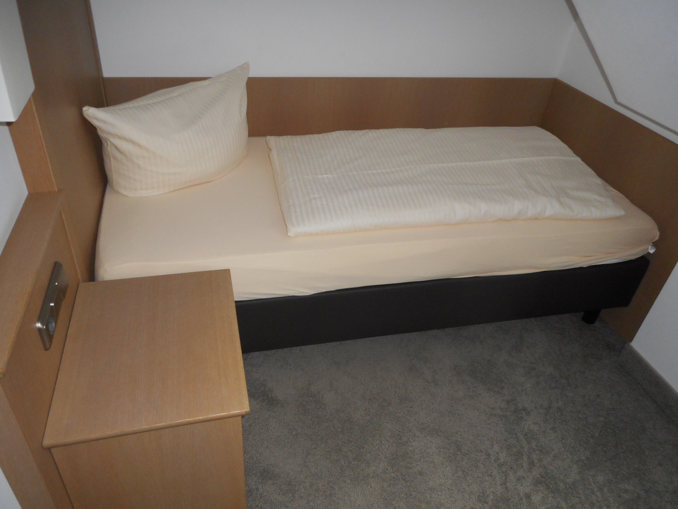 Das gemütliche Zimmer mit einer Größe von etwa 14 qm erwartet Sie mit einem bequemen Einzelbett (BHT: XXXXXX cm). Auch ein Schreibtisch mit Sitzgelegenheit steht für Sie bereit. Das helle Badezimmer verfügt über Dusche und WC sowie einen Haar Föhn. Des Weiteren ist das Zimmer mit SAT-TV, Zimmersafe, Radio, Telefon und kostenfreiem WLAN ausgestattet.