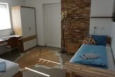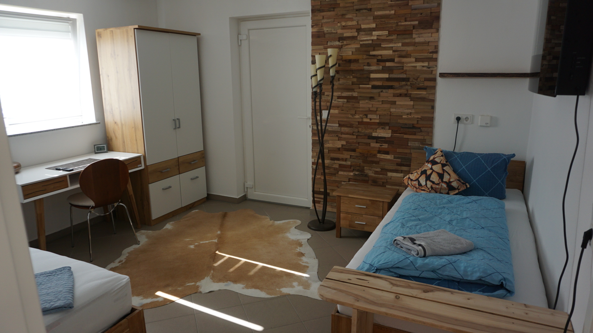 Unser Wohnzimmer ist mit einem Schlafsofa (Liegefläche 140cm x 200 cm), einem Beistelltisch, einer Massivholzschrankwand, einem kleinen Zimmersafe sowie einem 32 Zoll Flachbildfernseher ausgestattet. Selbstverständlich finden Sie hier auch Spiele, Bücher und Informationsmaterial über unsere Umgebung.