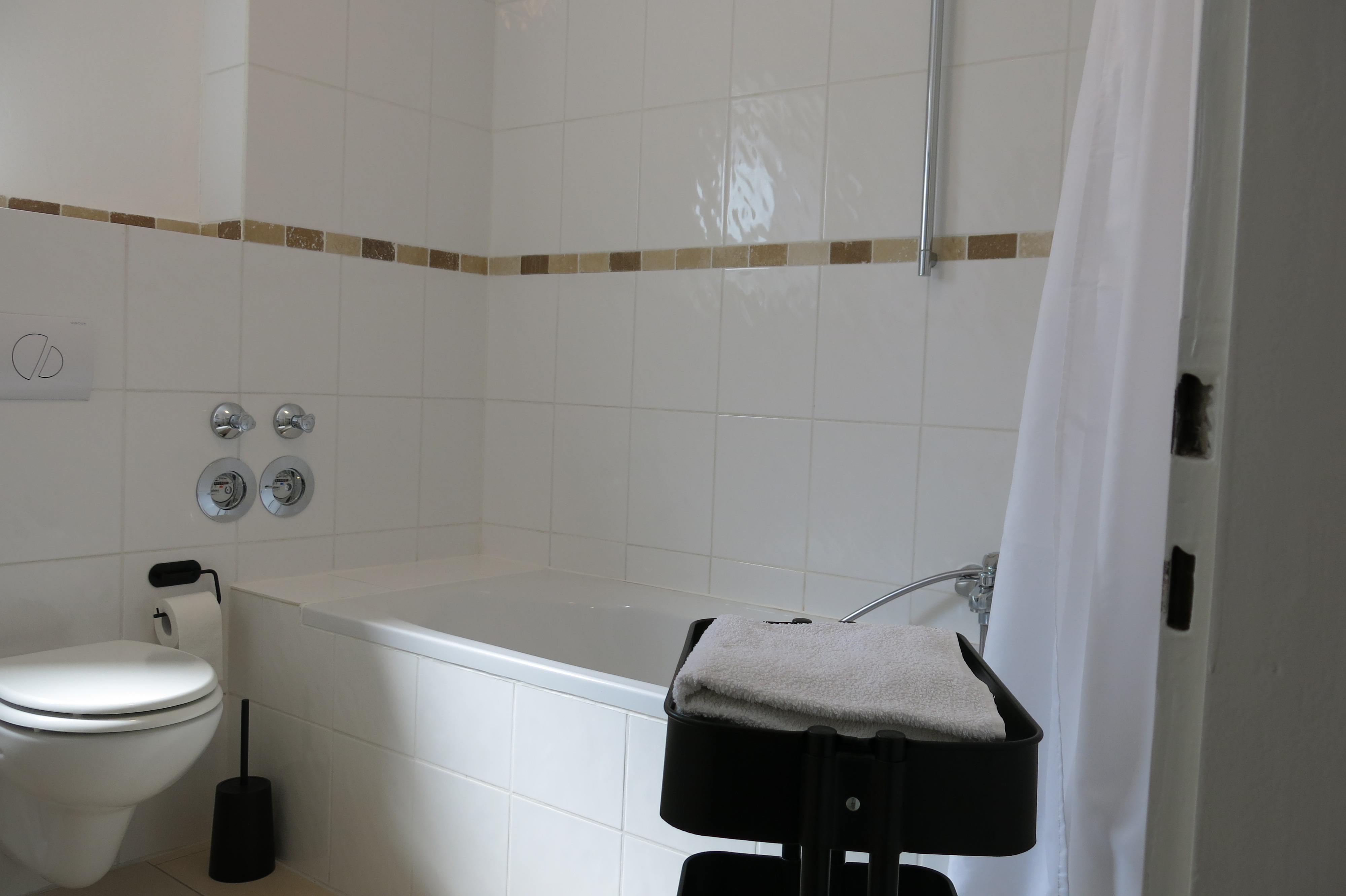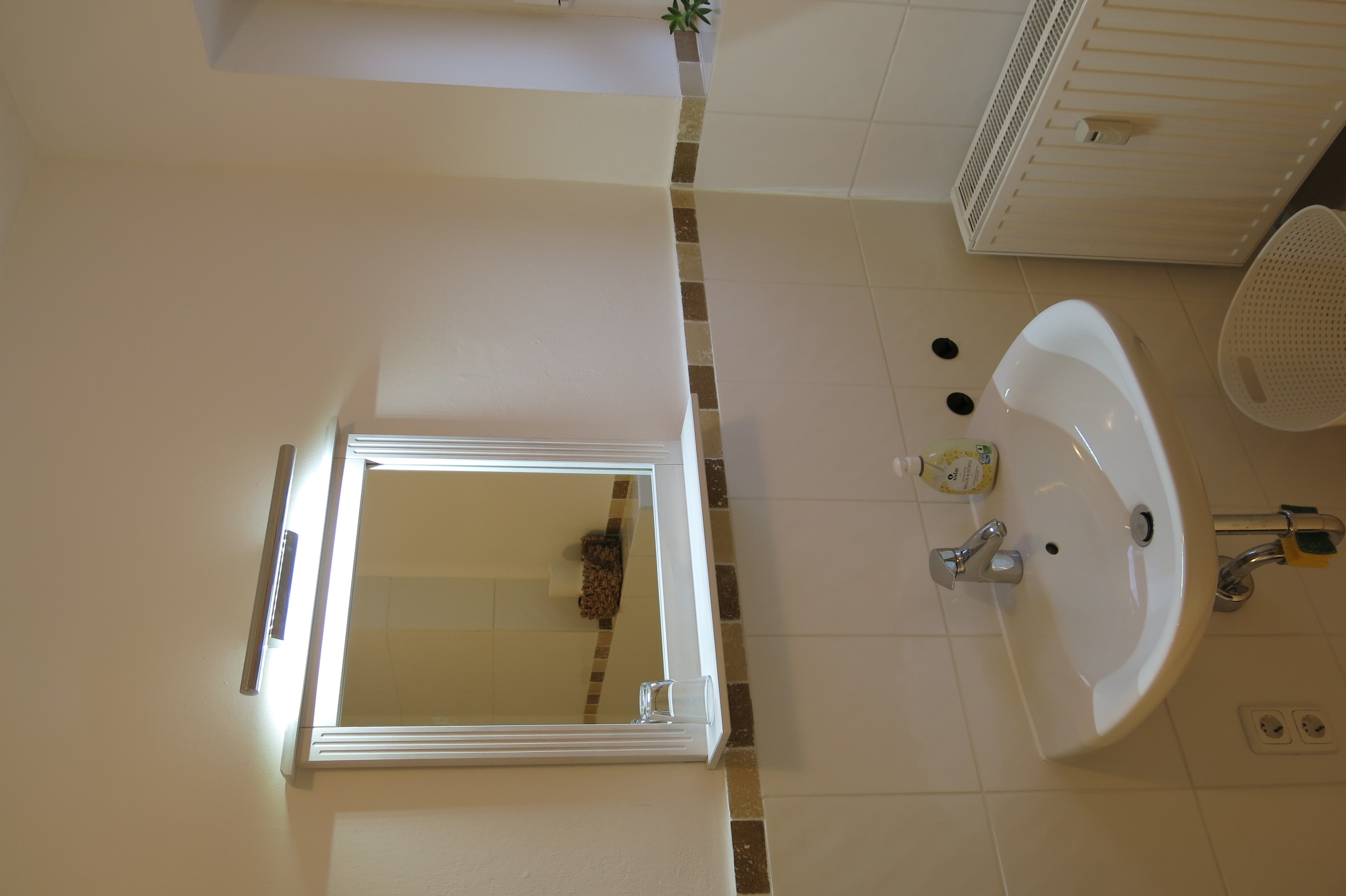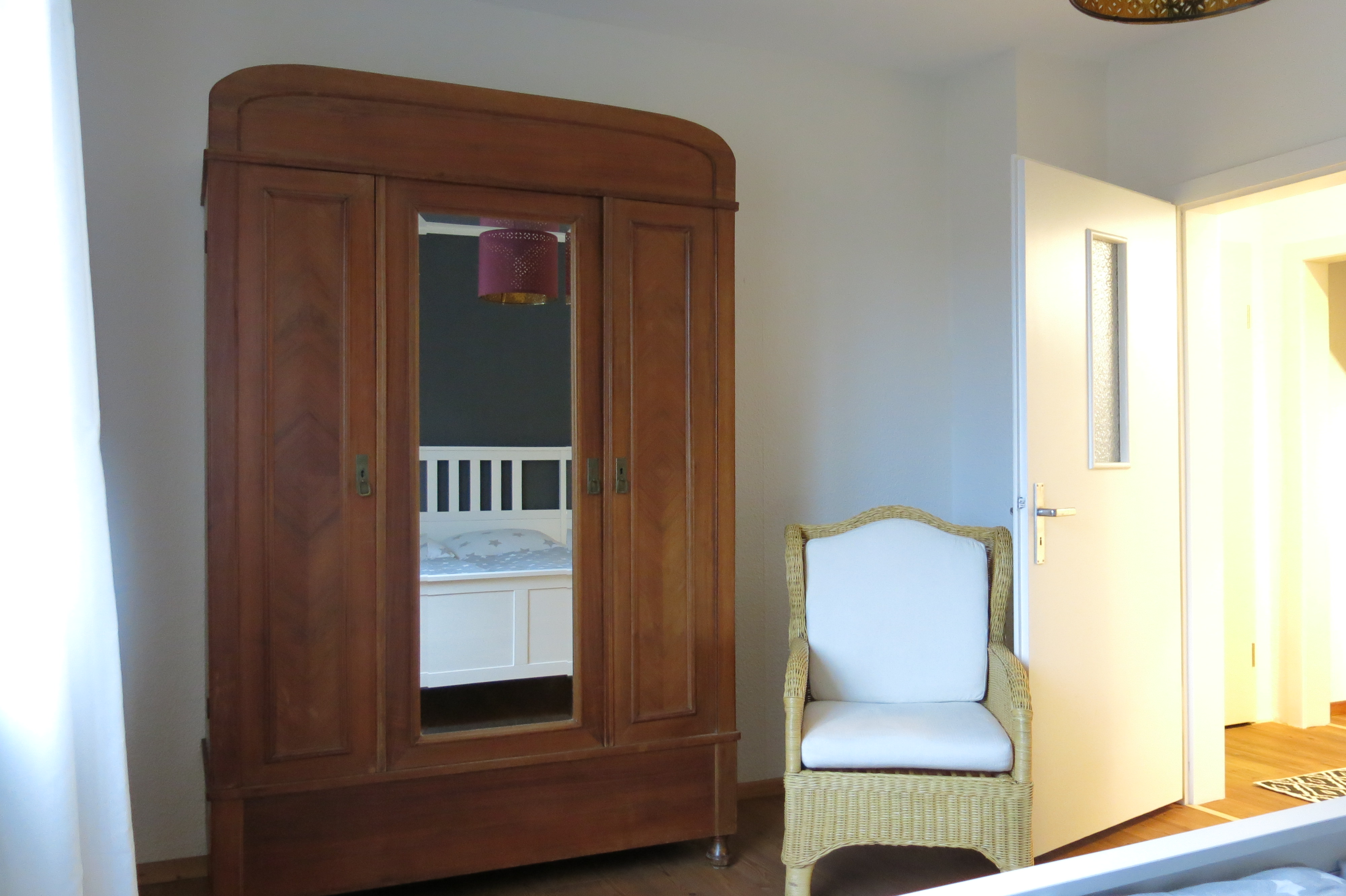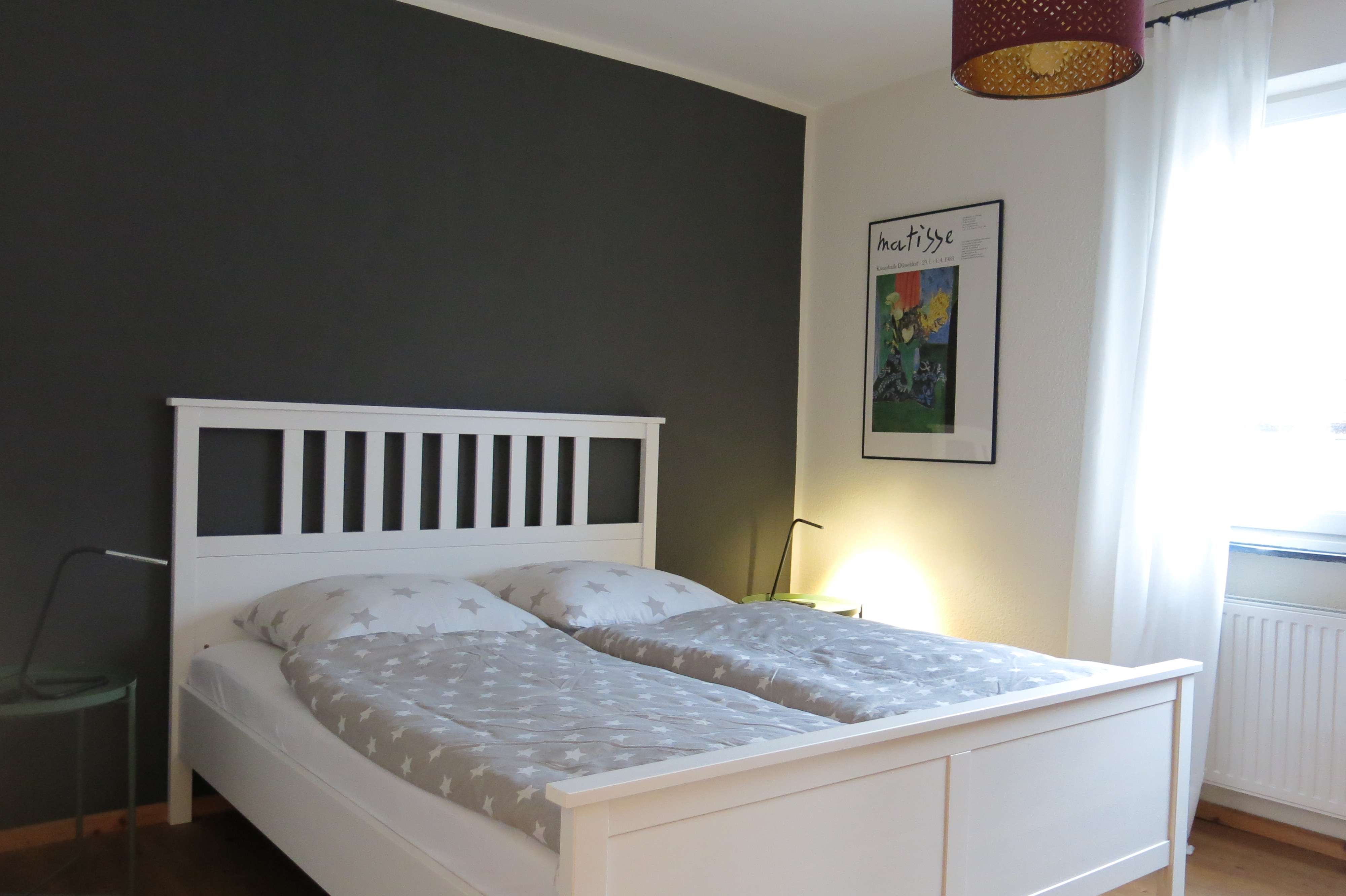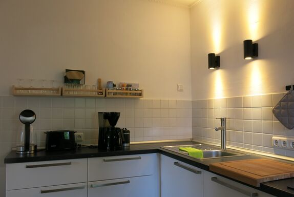 Die ruhige, freundliche Wohnung im Obergeschoss ist zum Garten hin ausgerichtet. Die Ferienwohnung verfügt über einen Flur und einen kleinen Garderobenraum. Im Schlafzimmer befindet sich ein großes Doppelbett. Das Wohnzimmer mit dem Schlafsofa, welches 140 cm breit ist, lädt zum Verweilen ein. Die moderne, neue Einbauküche ist mit Cerankochfeld, Spülmaschine und Mikrowelle ausgestattet. Das Badezimmer mit Badewanne und WC rundet das Gesamtbild ab. Auf einer Wohnfläche von 48qm finden bis zu 3 Personen Platz.