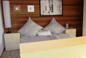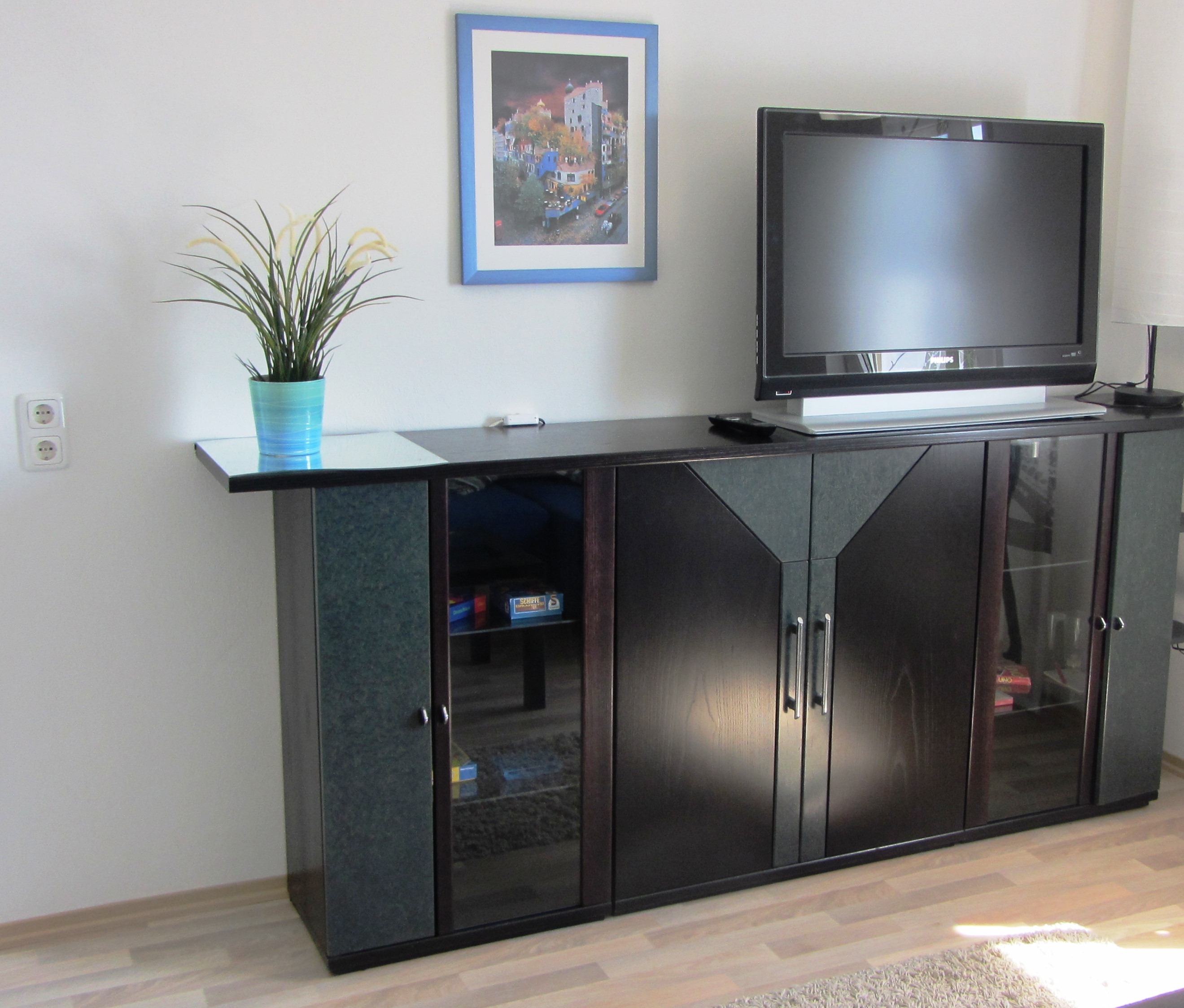 - ein Wohnzimmer mit Schlafsofa, Sat-TV, einen kleinen Tisch und ein Bücherregal mit Lektüre über Schweinfurt und Umgebung, sowie ein kleine Auswahl an Tischspielen.