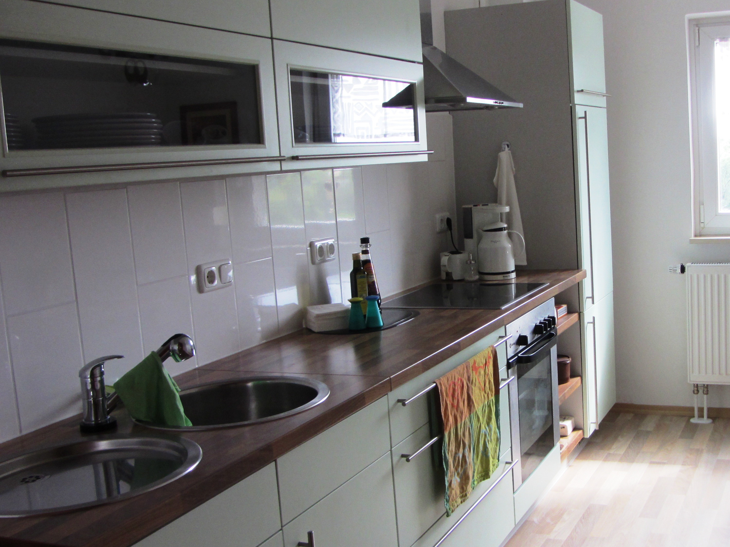 - eine große vollständig ausgestattete Wohnküche mit Kühlschrank, Kaffeemaschine, sowie ausreichend Geschirr und Besteck. Hier finden Sie auch Reinigungsmaterial.