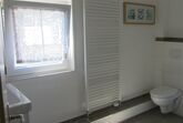 - ein Bad mit Dusche, Waschbecken und WC, Fön
