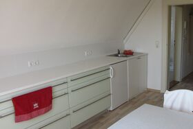 - eine große vollständig ausgestattete Wohnküche mit Kühlschrank, Kaffeemaschine, sowie ausreichend Geschirr und Besteck. Hier finden Sie auch Reinigungsmaterial.