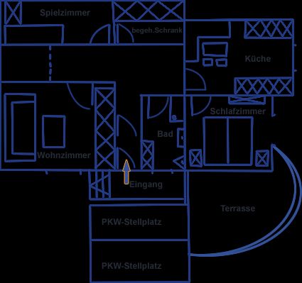 Die Wohnung ist mit allem ausgestattet was Sie für Ihren täglichen Gebrauch benötigen. Sie hat einen separaten Eingang, eine Terrasse und einen PKW-Stellplatz.