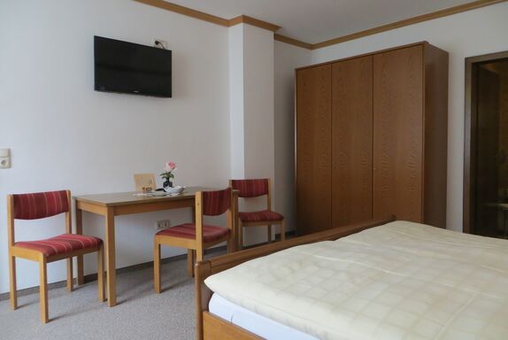 Wir bieten Ihnen ein gemütliches, helles und geräumiges Doppelzimmer, das auch als Dreibettzimmer genutzt werden kann!