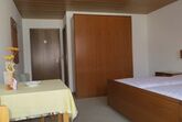 Das Zimmer mit Doppelbett, Schlafcouch Sat-TV und Sitzgelegenheit, lädt zum Verweilen ein. Das Badezimmer mit Dusche + WC und mit gemeinschafts Terrasse rundet das Gesamtbild ab.