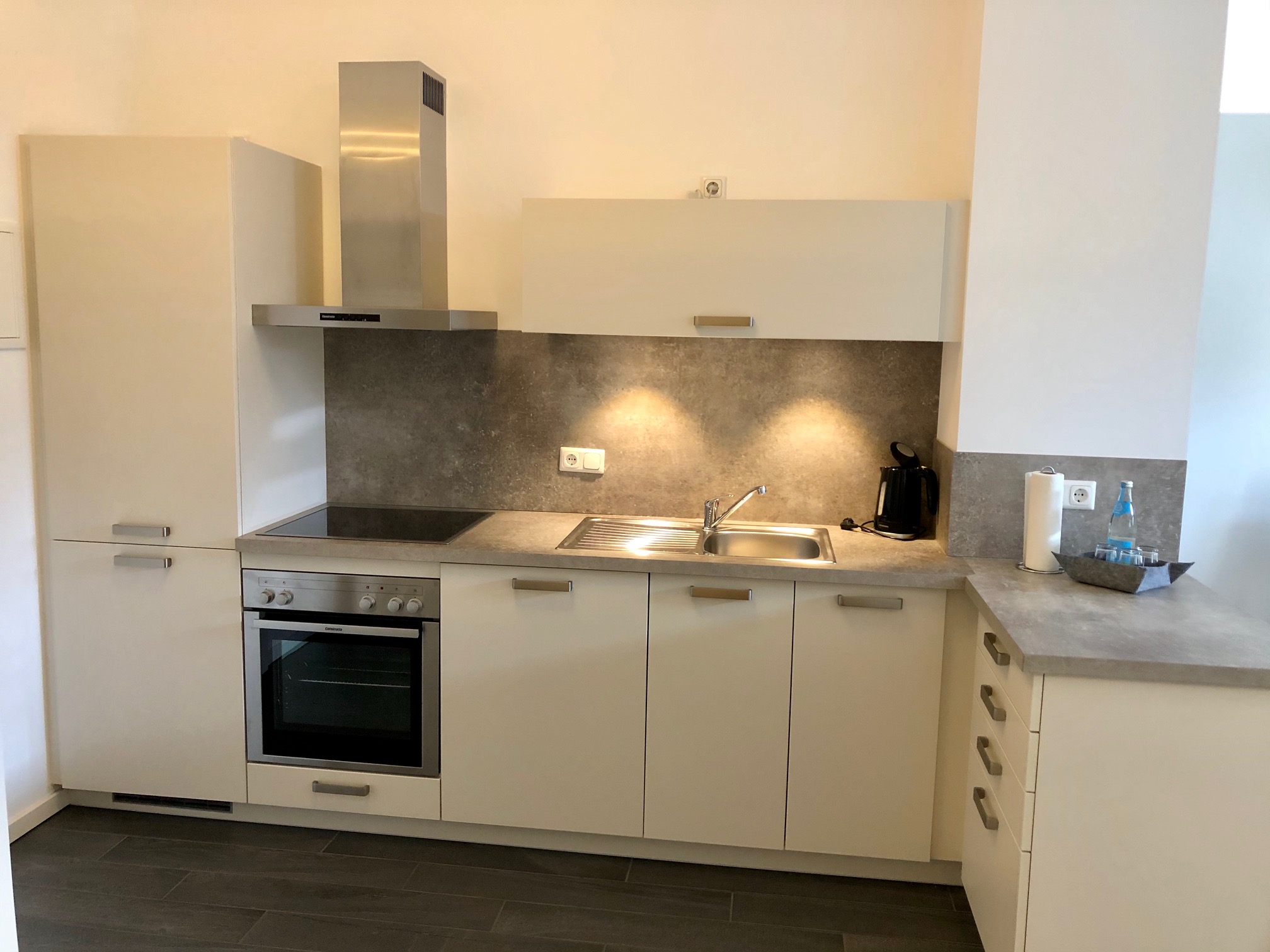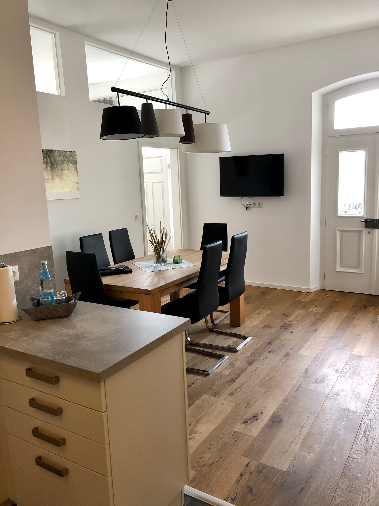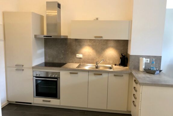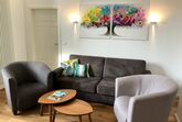 Ein hochwertiger Eichen Parkettfußboden, stilvolles Mobiliar und ein Flachbild-Fernseher mit Kabelanschluss runden das Angebot ab.