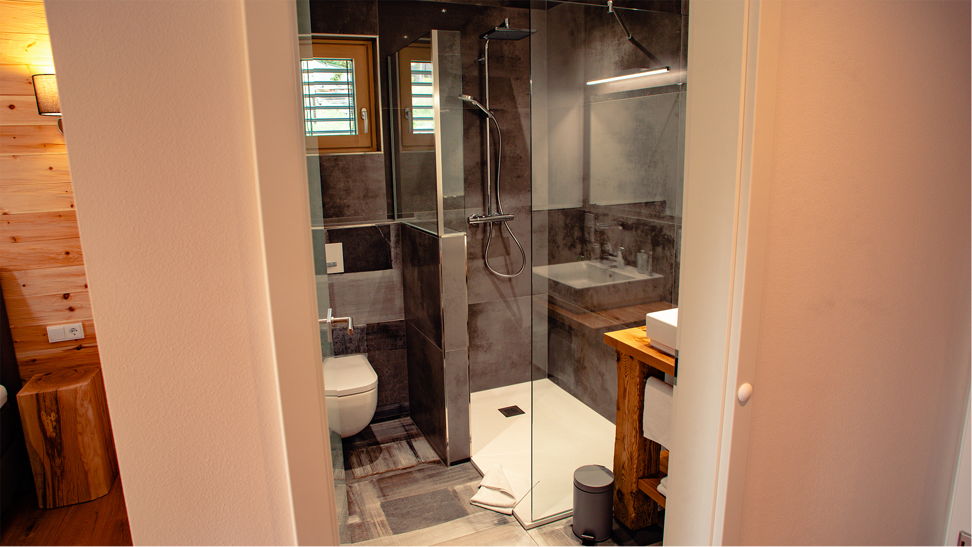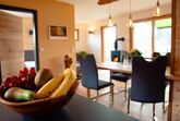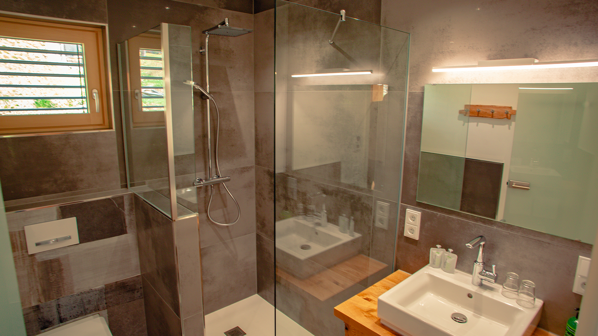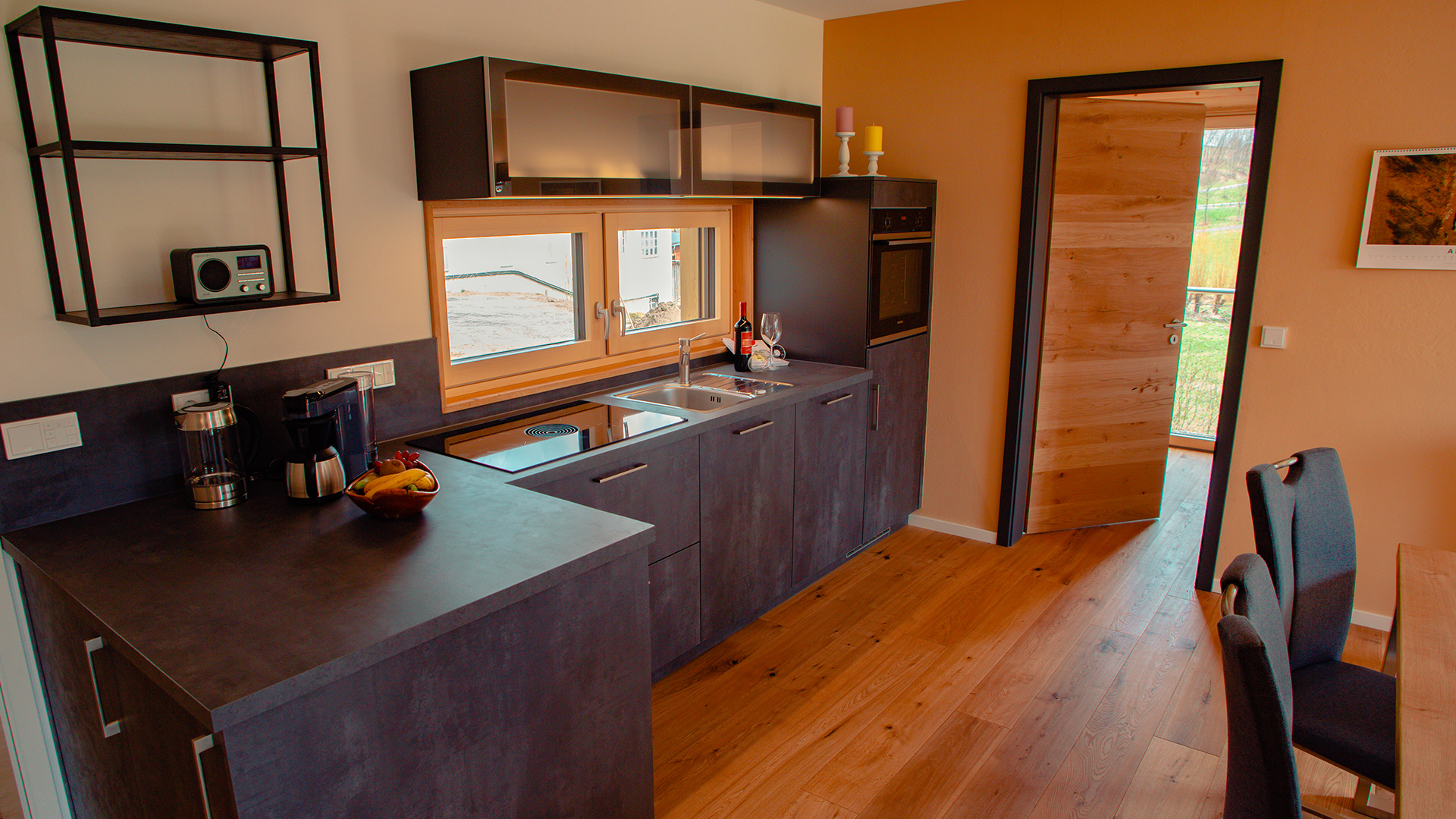 Was dürfen die Gäste im Ferienhaus Fichtelgebirge erwarten? Das Haus ist barrierefrei und bietet eine ausgesprochen hochwertige Ausstattung. Auf 59qm Wohnfläche und einer 25qm Sonnenterrasse mit elektrischer Markise lässt sich der Urlaub im Fichtelgebirge sehr angenehm gestalten. Zur Verfügung stehen zwei getrennte Schlafzimmer mit Boxspringbetten, eine hochwertige, vollausgestattete Küche sowie ein Bad mit großer Dusche (1,40 x 0,90 m).