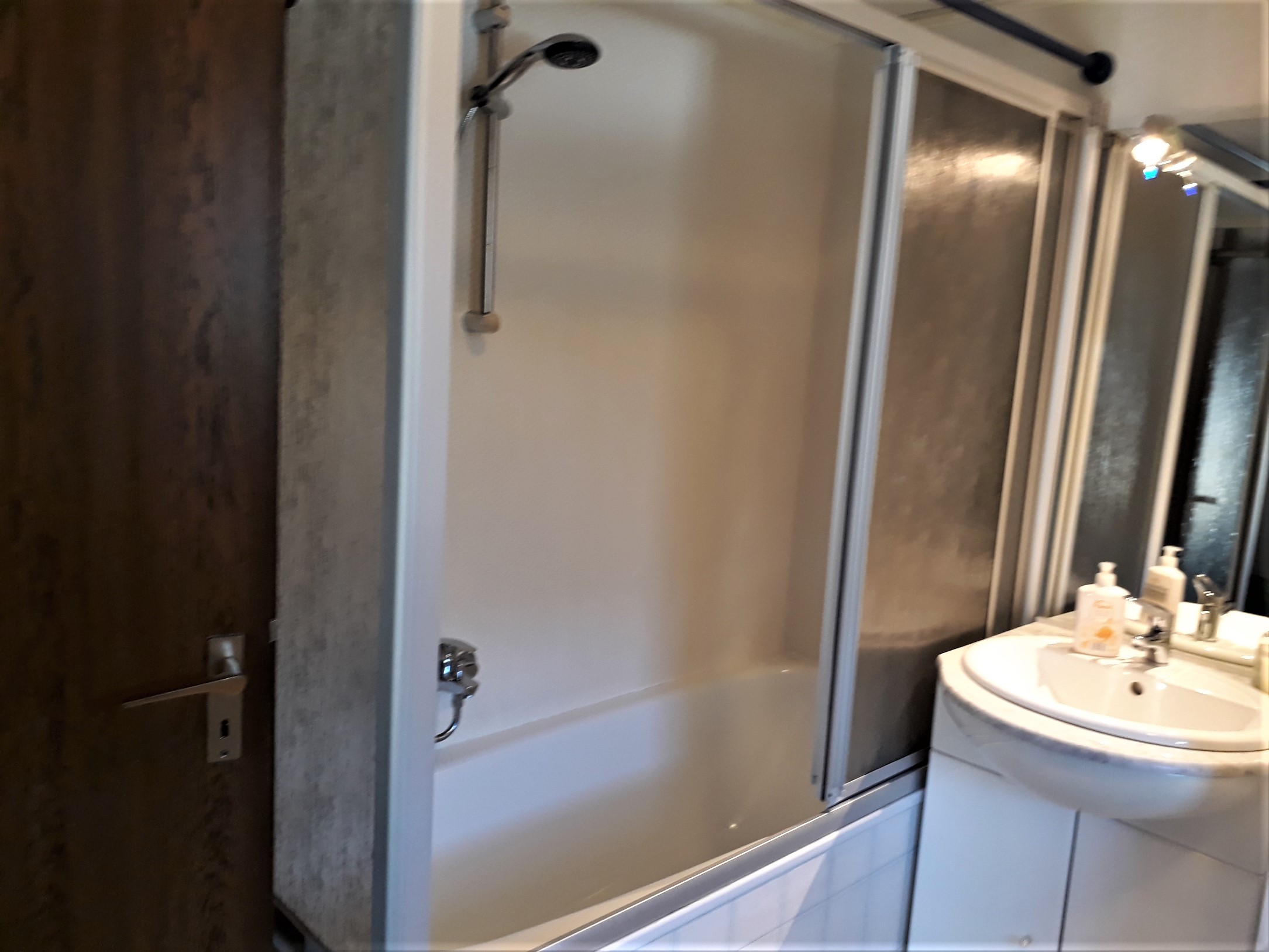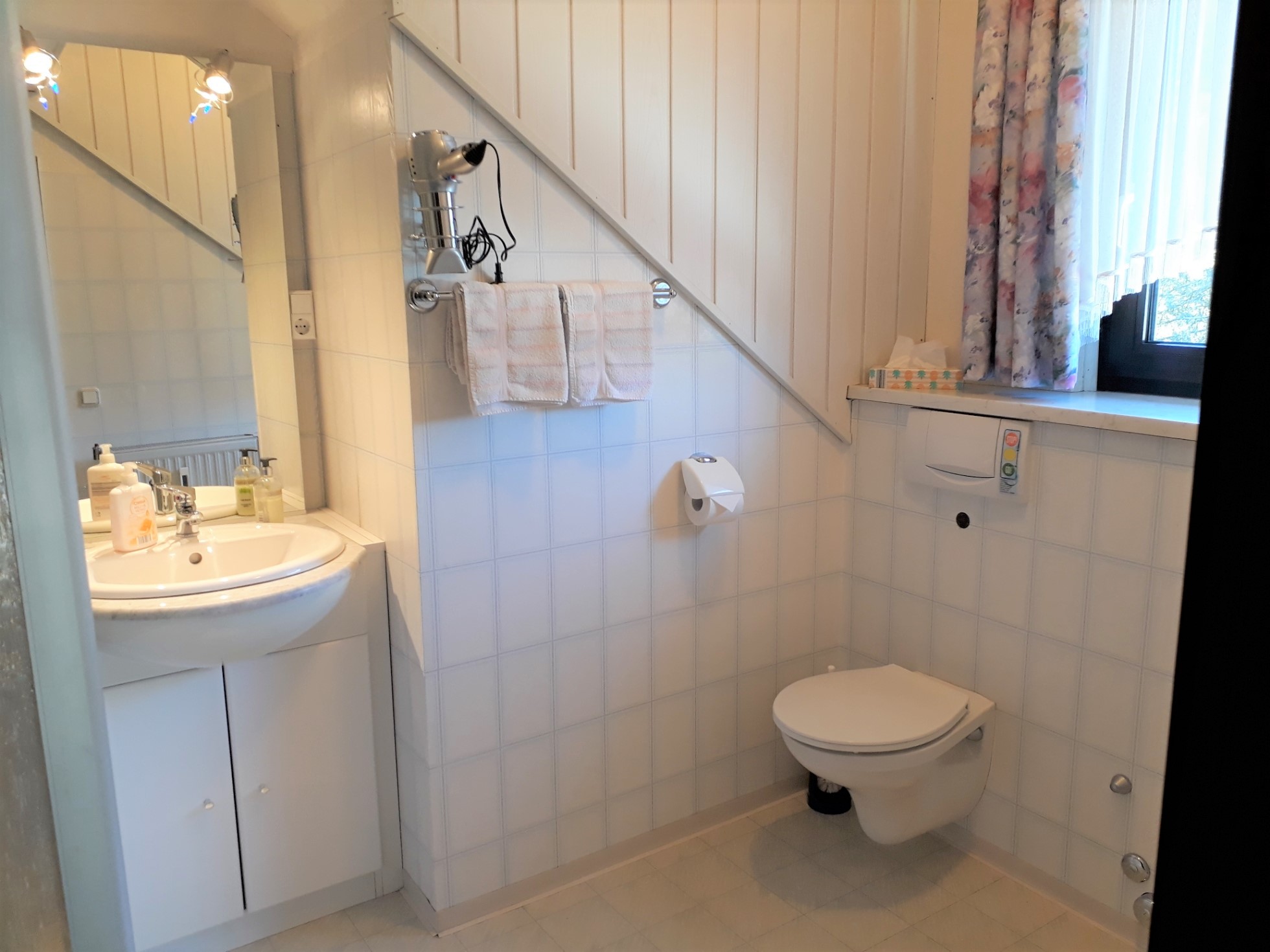Ein Badezimmer mit Badewanne/Dusche und WC, sowie Spiegelwaschplatz und Haartrockner ausgestattet, rundet das Gesamtbild ab. Toilettenpapier, Kosmetiktücher und Seifen sind selbstverständlich. Die vorhandenen Bade- und Handtücher wechseln wir bei Bedarf mehrmals in der Woche.