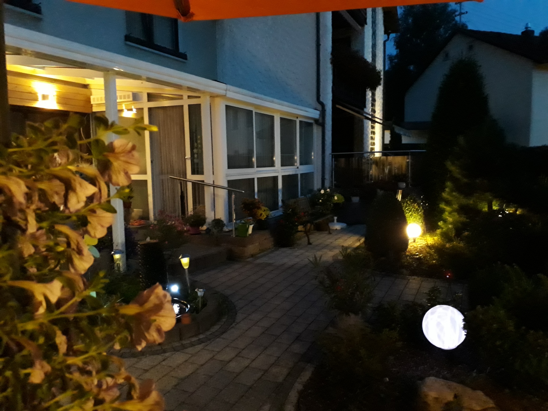 Wir freuen uns auf Ihr Kommen. Ein Gläschen zur Begrüßung steht schon bereit. Als Romantiker sitzen sie bestimmt abends gerne auf dem Balkon oder auf der Veranda unseres kleinen Garten-Blockhäuschens bei Kerzenschein und einem Gläschen Wein. Genießen Sie den erholsamen Blick auf unseren kleinen Park am Haus.
