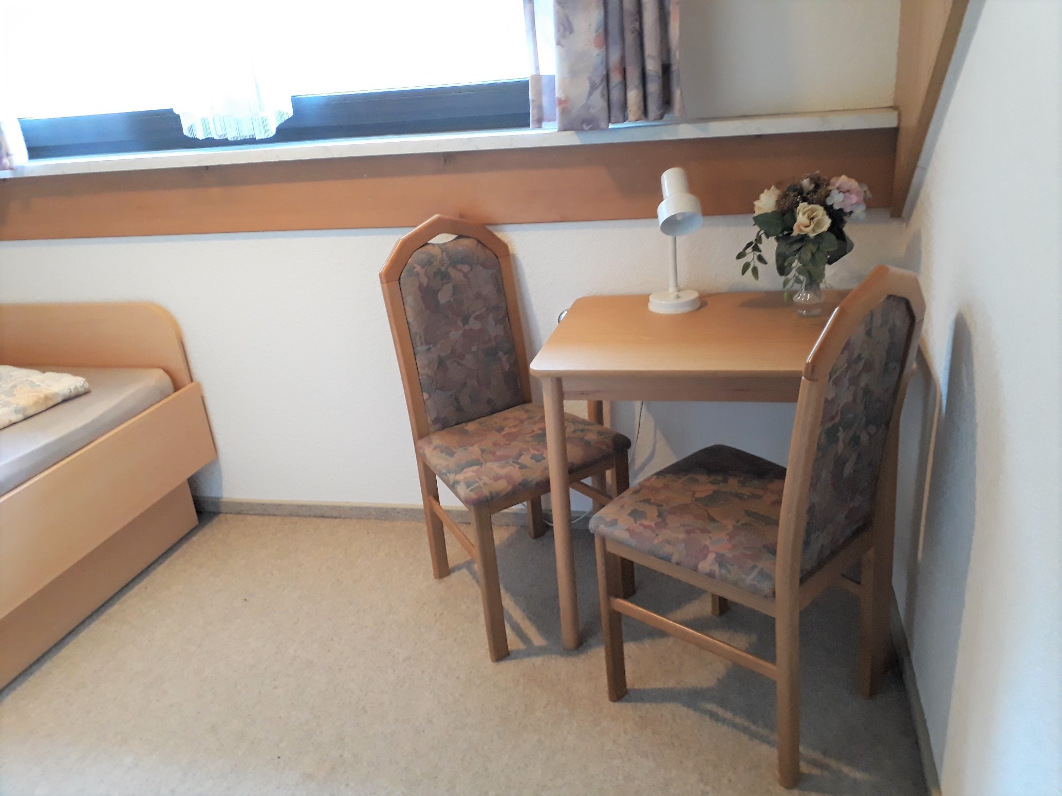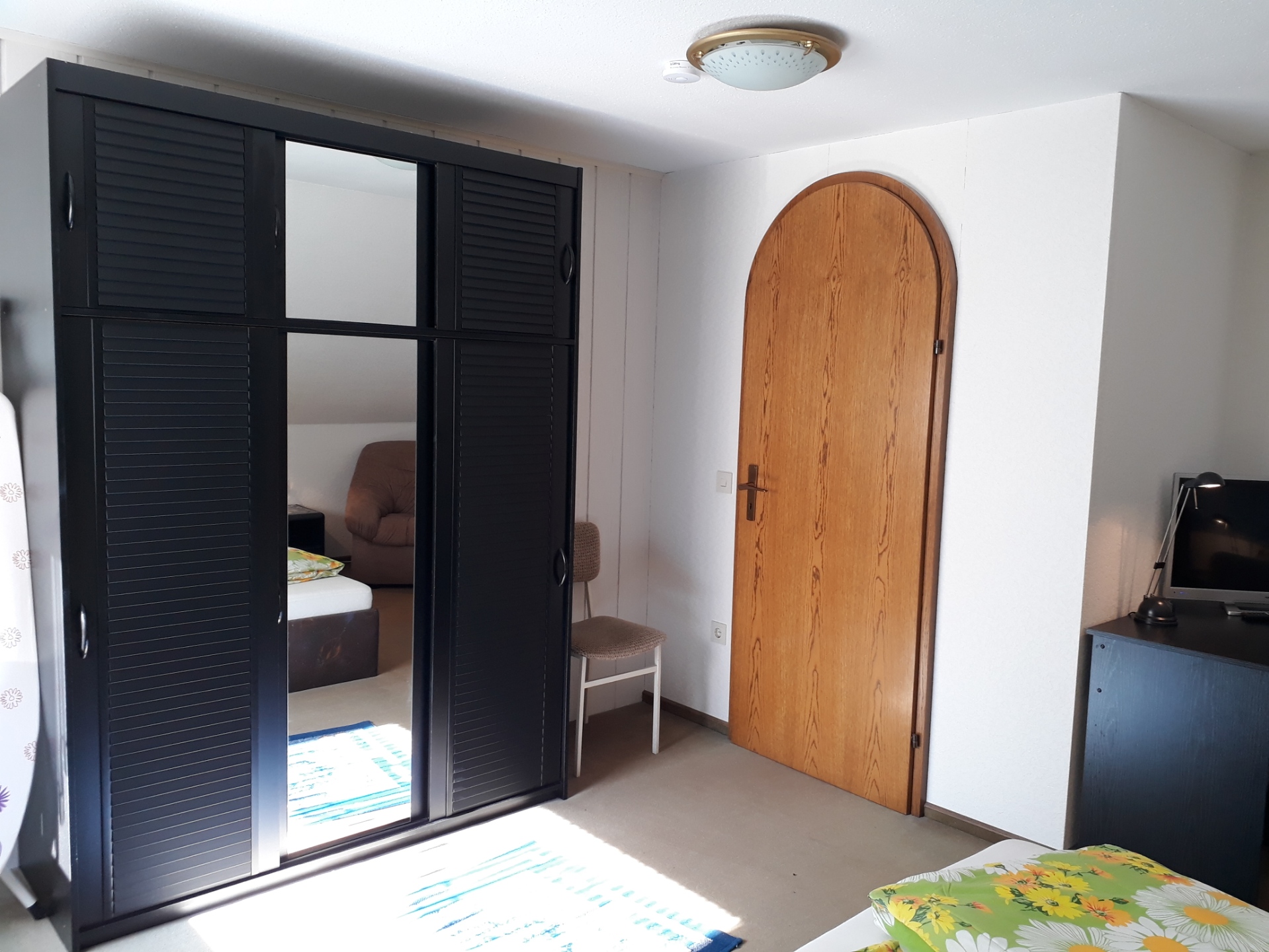 Das weitere, getrennte Schlafzimmer besteht aus 2 Einzelbetten, Kleiderschrank und Schreibplatz.