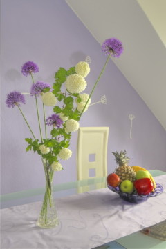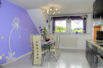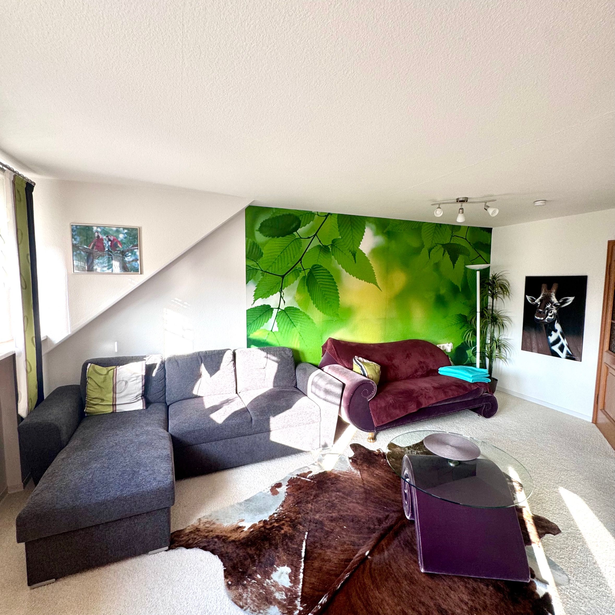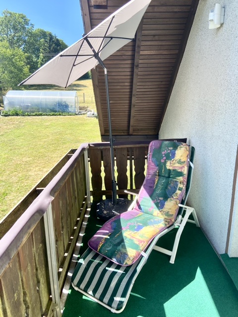 Unser Haus liegt 650m hoch in ruhiger, sonniger Lage mit herrlichem Panoramablick umgeben von saftigen, grünen Wiesen und viel Natur. Unsere Ferienwohnung mit einer Wohnfläche von 100 qm bietet Platz für bis zu 6 Personen. Über das geräumige Schlafzimmer mit Doppelbett gelangen Sie direkt auf den überdachten Balkon und können von dort die Abendsonne genießen. Im zweiten Schlafzimmer befindet sich ein Einzelbett, dass man als Doppelbett vergrößern kann. Das gemütliche Wohnzimmer lädt zu gemeinsamen Fernseh- oder Spieleabend ein. Hier befindet sich eine Schlafcouch für bis zu 2 Personen. Die moderne Küche verfügt über einen weiteren kleinen Frühstücksbalkon und einem Esstisch und ist mit Backofen, Herd, Geschirrspüler, Kühlschrank, Wasserkocher, Mikrowelle und Toaster ausgestattet. Das Badezimmer mit Dusche & Badewanne und das separate WC runden das Gesamtbild ab. Den Parkplatz am Haus und das WLAN nutzen Sie kostenfrei.