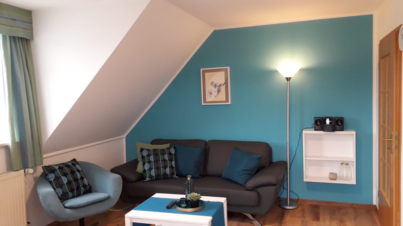 Die komplette Wäscheausstattung Bettwäsche und Handtücher/Geschirrtücher wird gestellt und auf Wunsch gerne gewechselt. In unsren großen Wohnungen haben wir 2 Flachbild Fernseher mit Kabelanschluss, eine Stereoanlage sowie Telefon und kostenfreies W-LAN. Bei Bedarf an einem Reisebettchen oder einem Kinderhochstuhl können wir gerne weiterhelfen.