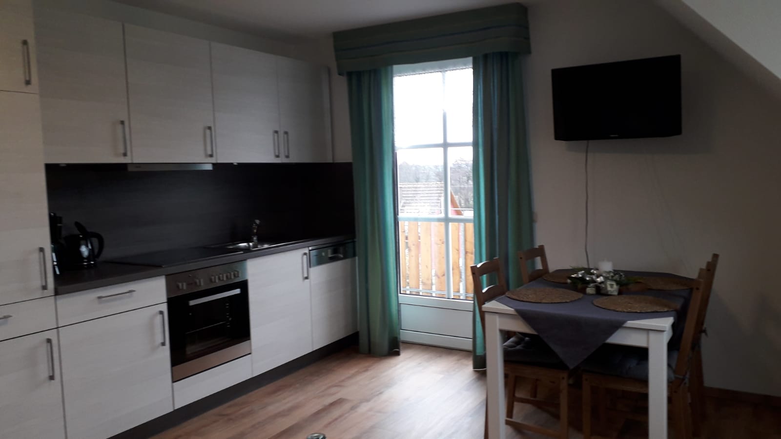 70qm zum Wohlfühlen,für 2-5 Personen, Die Küche mit gemütlichem Wohnraum und Essecke,lässt keine Wünsche offen. Ein E-Herd mit Cerankochfeld, Kühlschrank mit Gefrierfach,Geschirrspüler, Mikrowelle,Toaster, Kaffeemaschine, Eierkocher,Wasserkocher, komplett ausgestattet mit Geschirr und Kochgeschirr für 5 Personen. Zwei großzügige Schlafräume mit jeweils einem Doppelbett und einem Beistellbett , sowie 2 moderne Bäder mit 2 mal Dusche/ WC tragen zum Wohlfühlen bei. Unsere Ferienwohnung Bachwiesenblick oben ist liebevoll mit Naturholz Möbel eingerichtet und hat einen großen Balkon.