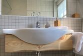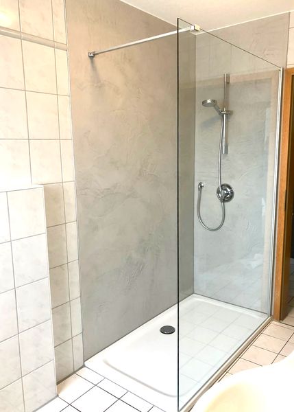 Die Ferienwohnung Bachwiesenblick (unten) mit 70 qm Wohnfläche bietet vollste Behaglichkeit für bis zu 4-5 Personen. Die Küchenzeile ist mit Wohnraum und Essecke kombiniert. Sie lässt keine Wünsche offen und beinhaltet E-Herd mit Cerankochfeld, Kühlschrank mit Gefrierfach, Geschirrspüler, Mikrowelle, Toaster, Kaffeemaschine Eierkocher, Wasserkocher,sowie Essgeschirr und Kochgeschirr für 5 Personen. Außerdem gibt zwei schöne helle Schlafräume mit Doppelbett und einem Dreibettzimmer. Die zwei modernen Bäder sind 2mal mit DU/WC , Fön und beleuchteten Kosmetikspiegel ausgestattet. Das Highlight ist der große anliegende Balkon.